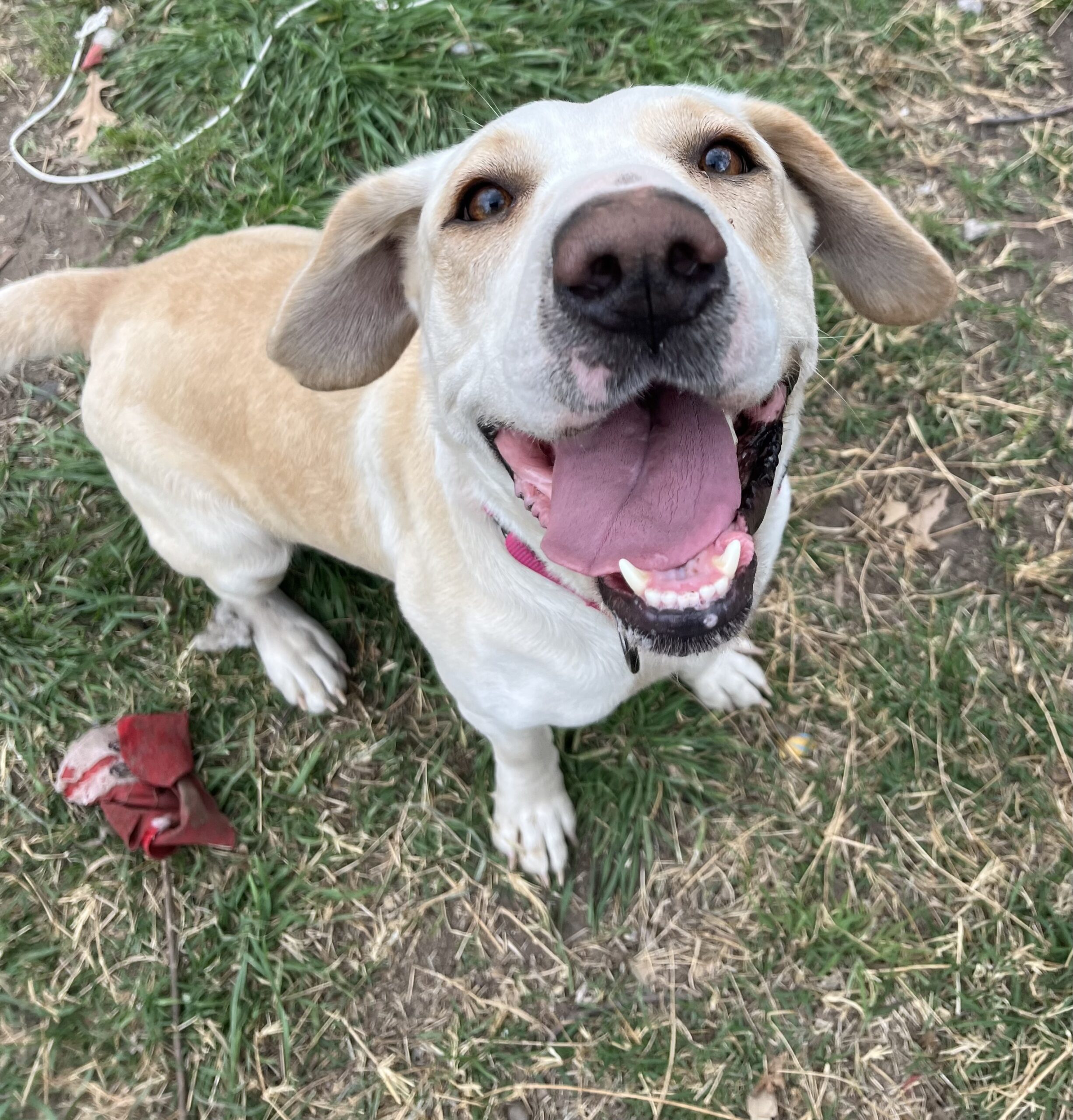 Addie is a happy go lucky lab mix! She is very sweet & friendly to people and both small and large dogs. She has been a great houseguest in her foster home and is both crate and potty trained. She loves romping in the backyard, car rides and squeaky toys. She is good motivated and knows some basic commands like sit, shake and down. Her social & easy going nature tells us she will fit wonderfully in a variety of homes.