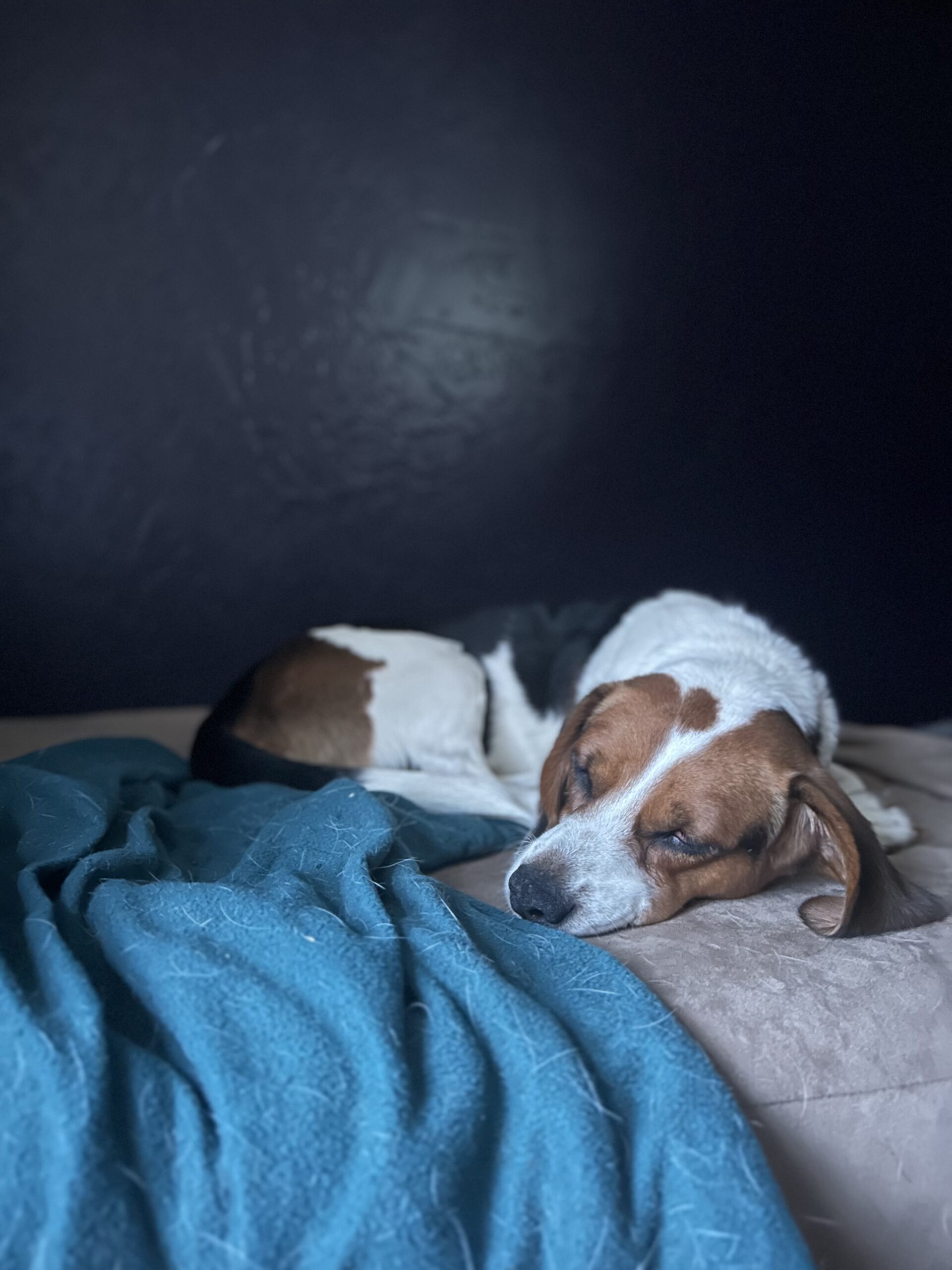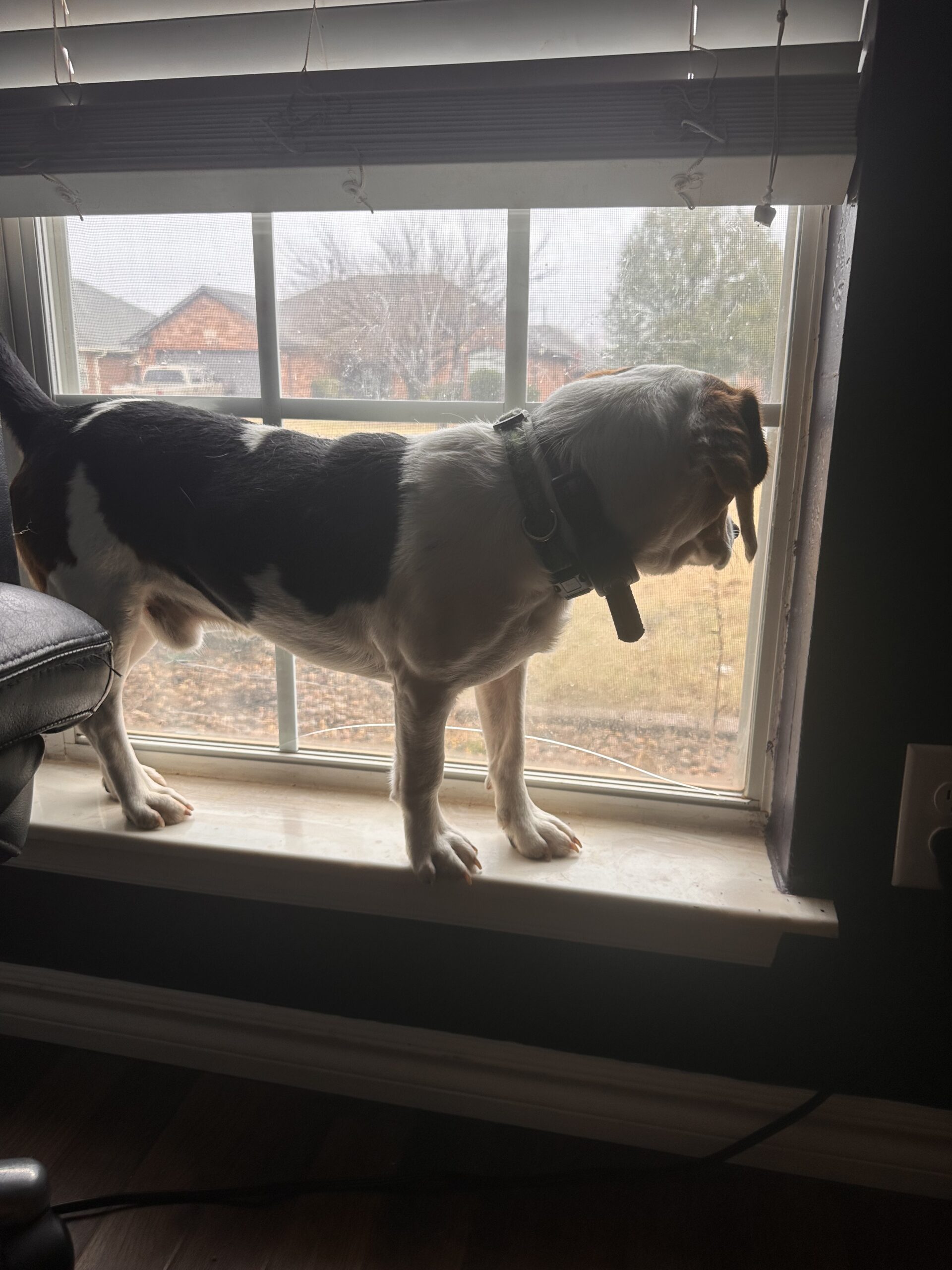 Beau is adapting well to indoor life and is working hard on potty and crate training! He’s doing well sleeping through the night in his kennel without accidents.