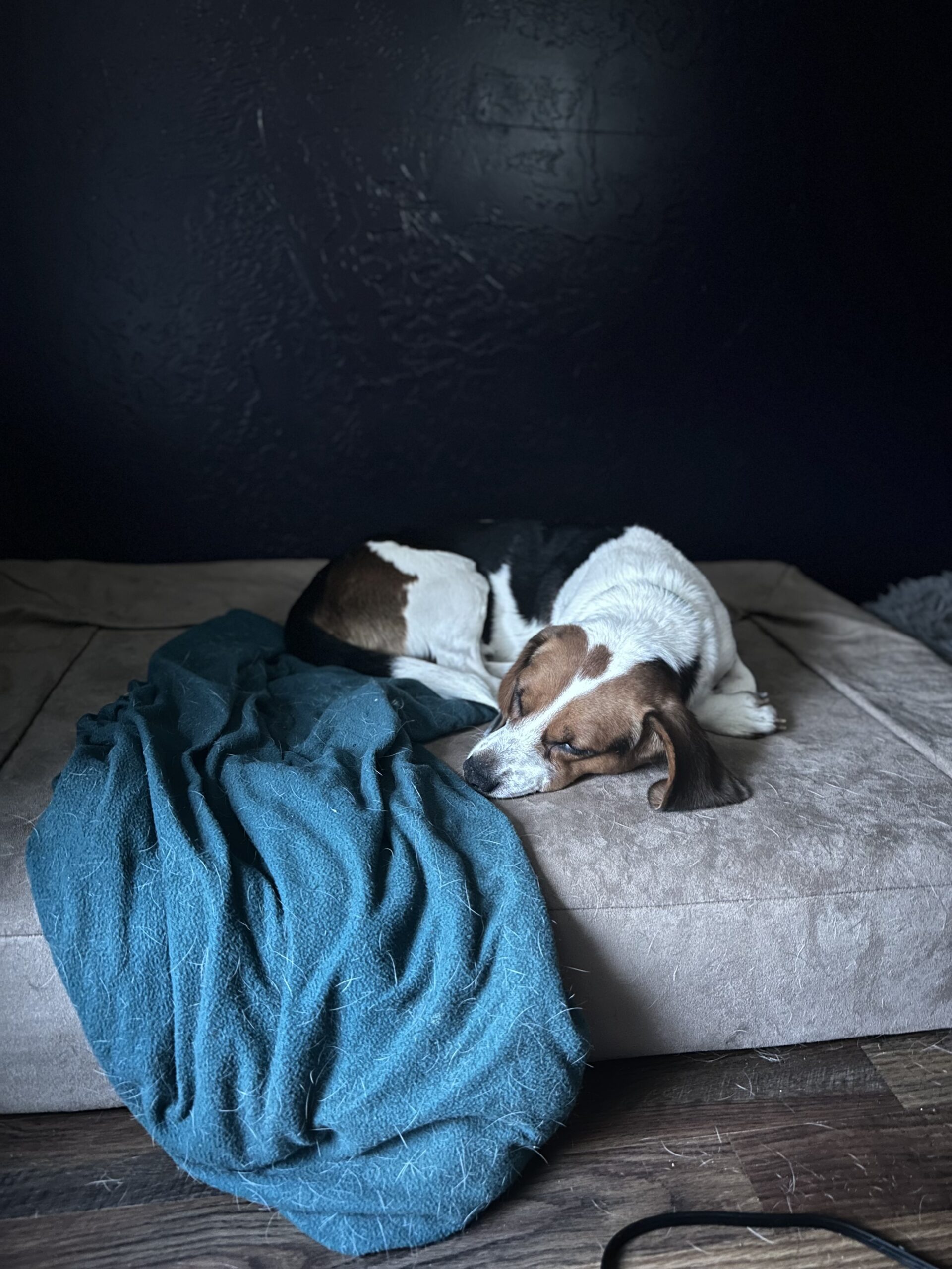 Beau and his sister Bella were found as strays running along a highway in eastern Oklahoma. When a motorist stopped to check on them, Beau sat in place — hesitant of the strangers but hopeful to be with humans again. He was so gentle and sweet and immediately melted into their arms. He curled up and slept the whole car ride.