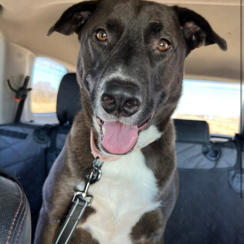 Her favorite toys are squeaky ones, and she loves a good game of fetch or tug. She’s potty trained and crate trained. She sleeps in her crate at night. Belle gets along well with other dogs and has been friendly with the dogs in her foster home.