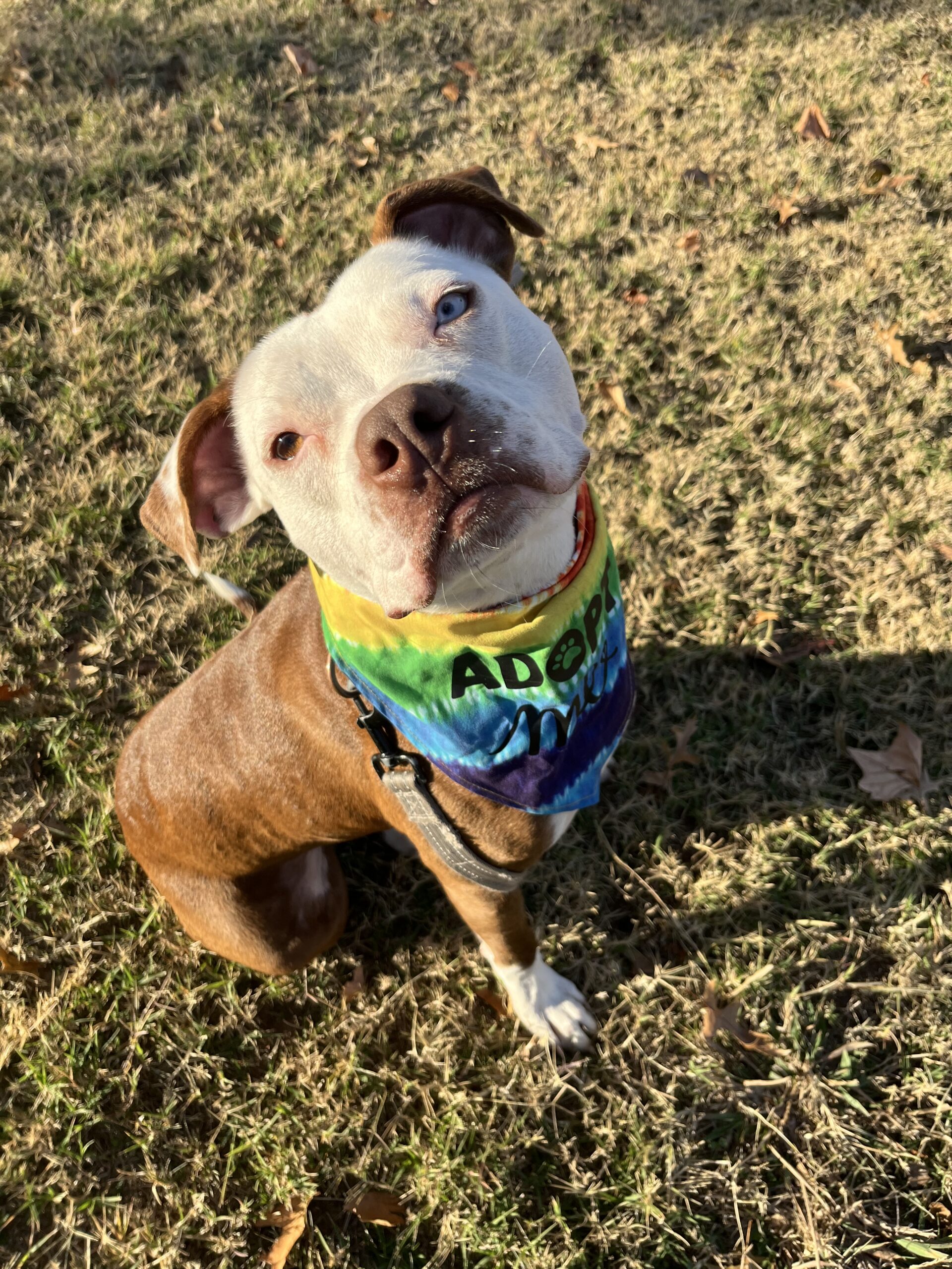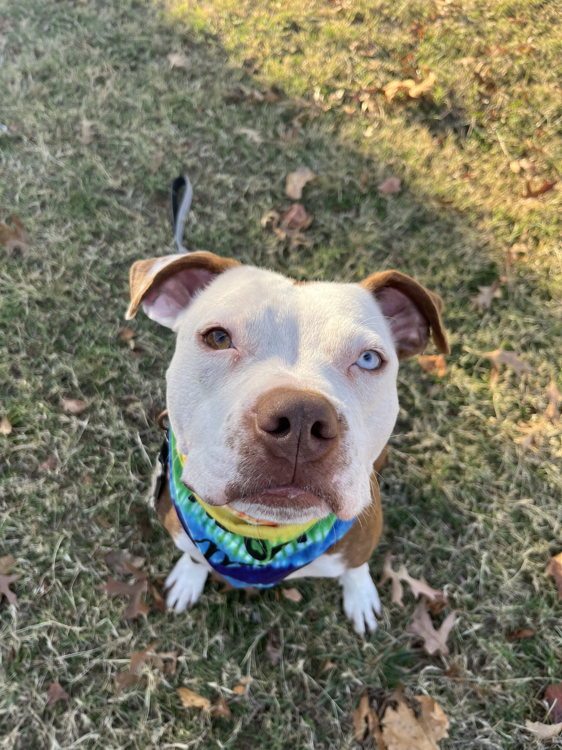 Meet Bodhi, a handsome 50 pound, one to two year old boy who is thriving in his foster home. He is the perfect mix of soft and silly, always ready to make you smile. Bodhi is super playful with dog friends and quick to offer his paw to new people he meets as if to say, "Notice me, please!" He knows no personal space and his favorite place is RIGHT next to you. He’s very mushy & sweet and makes a great cuddle buddy.