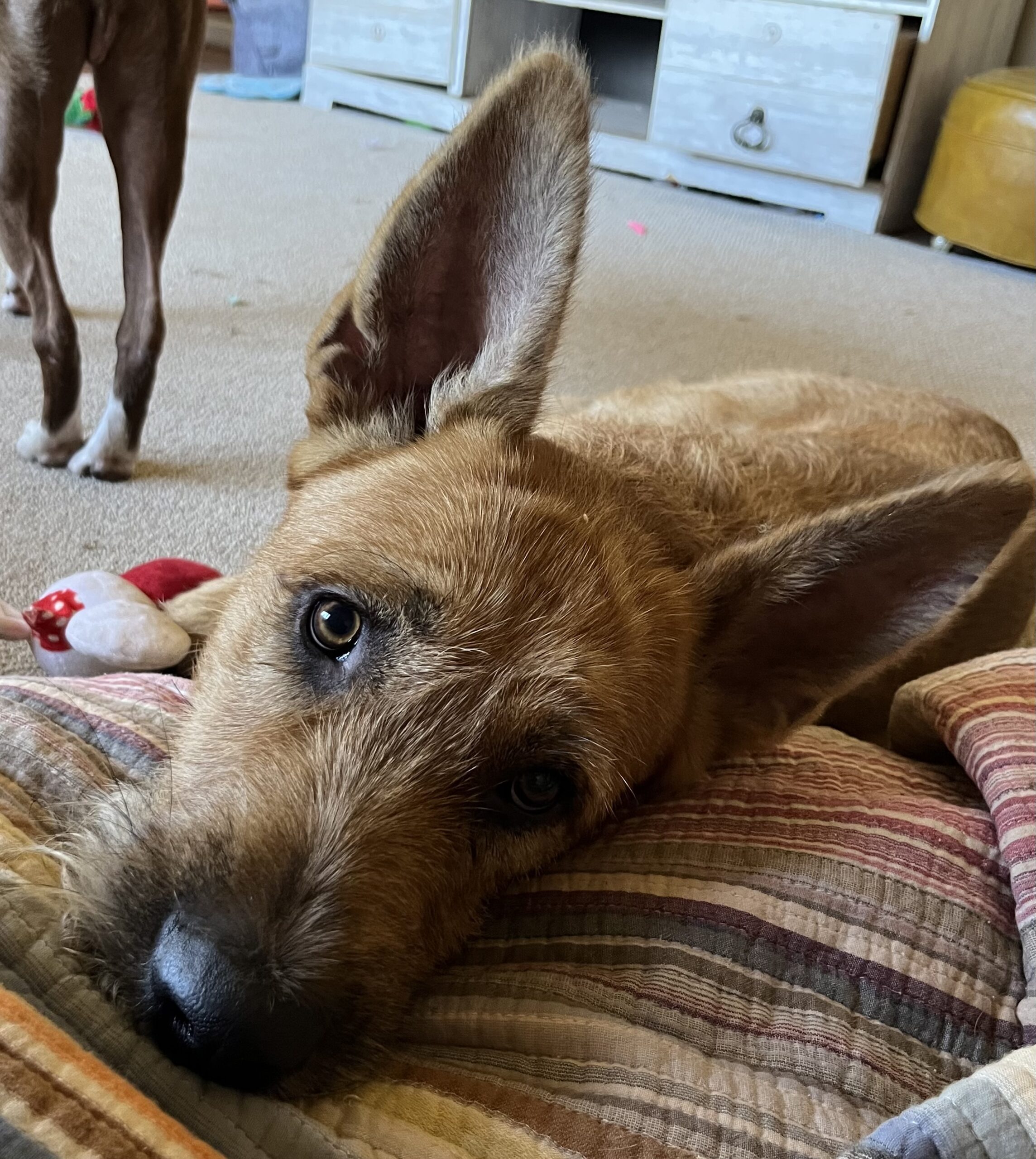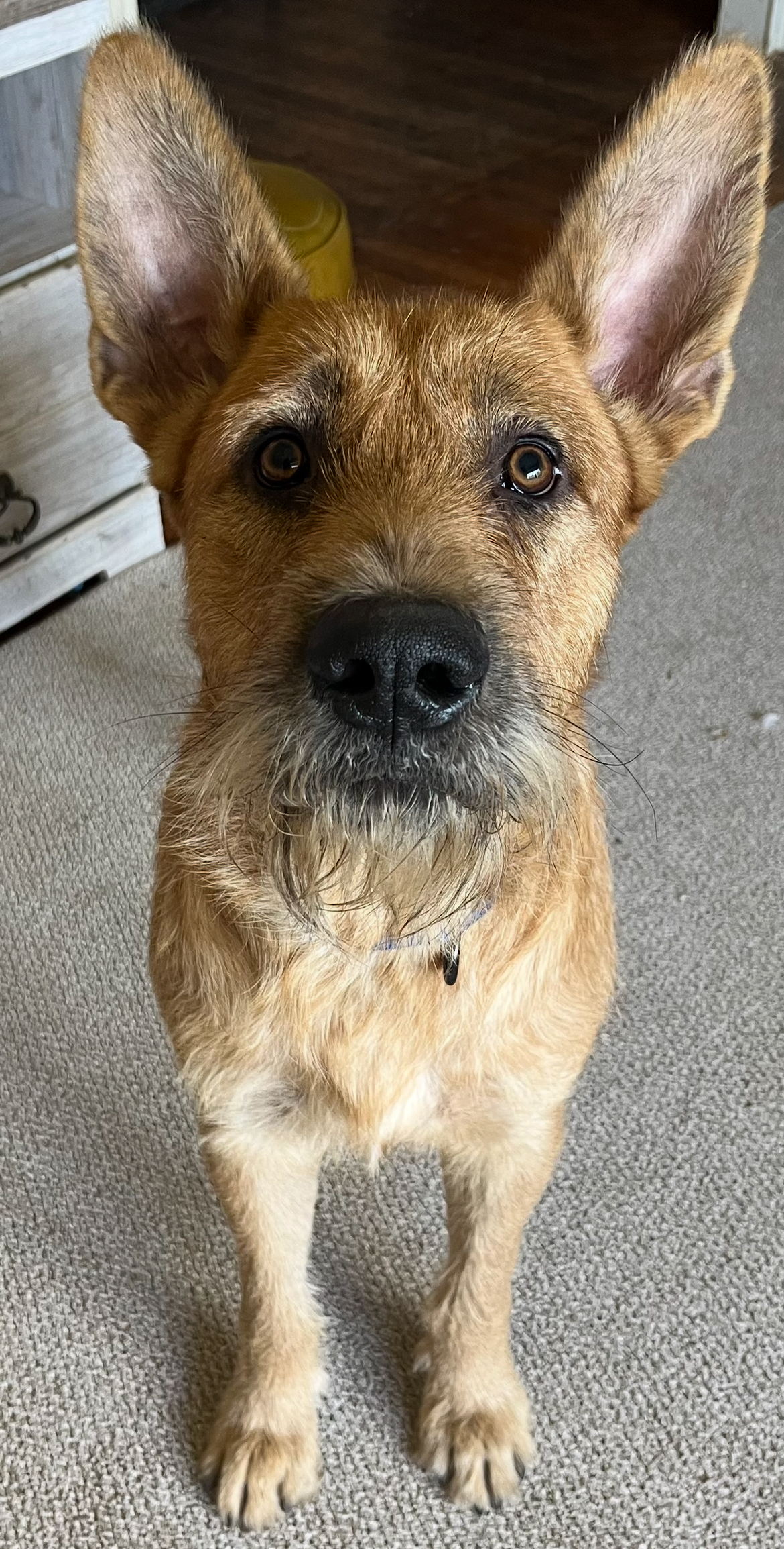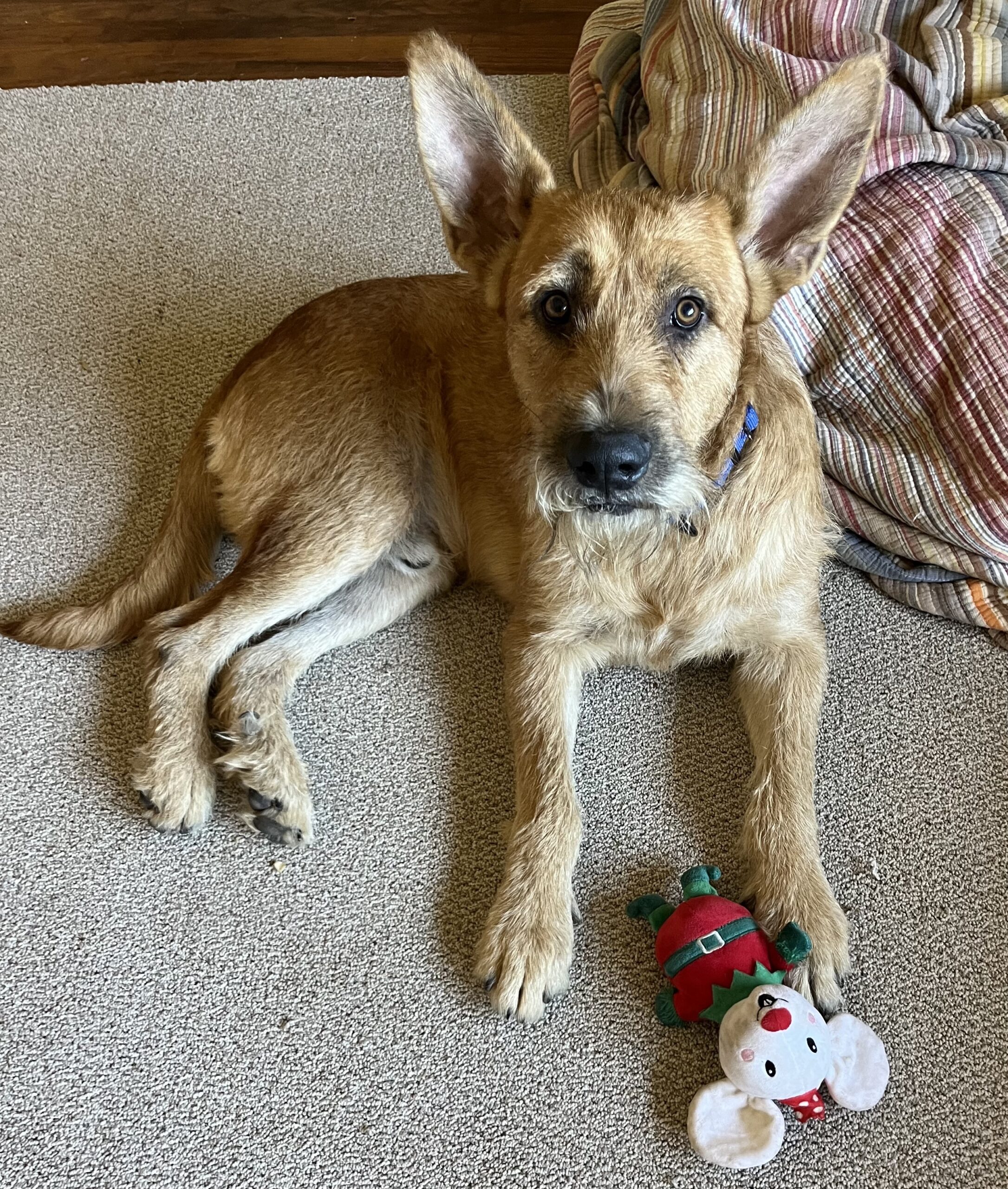 Brady is a loyal and loving gentleman who is ready to find his forever home. He enjoys the company of other dogs, lounging around the house and chewing on bones. He likes to be your shadow and follow you from room to room but is never pushy or demanding of attention. Brady enjoys car rides and walks and does well on both. He can be a little cautious in new situations but with kind hands and gentle words he warms up quickly. He is housebroken and has been non destructive when given free roam in his foster home. Brady can easily jump a four foot fence so a taller fence or leashed potty breaks are recommended. He is a devoted companion who bonds deeply with his person and will make a wonderful best friend for someone.