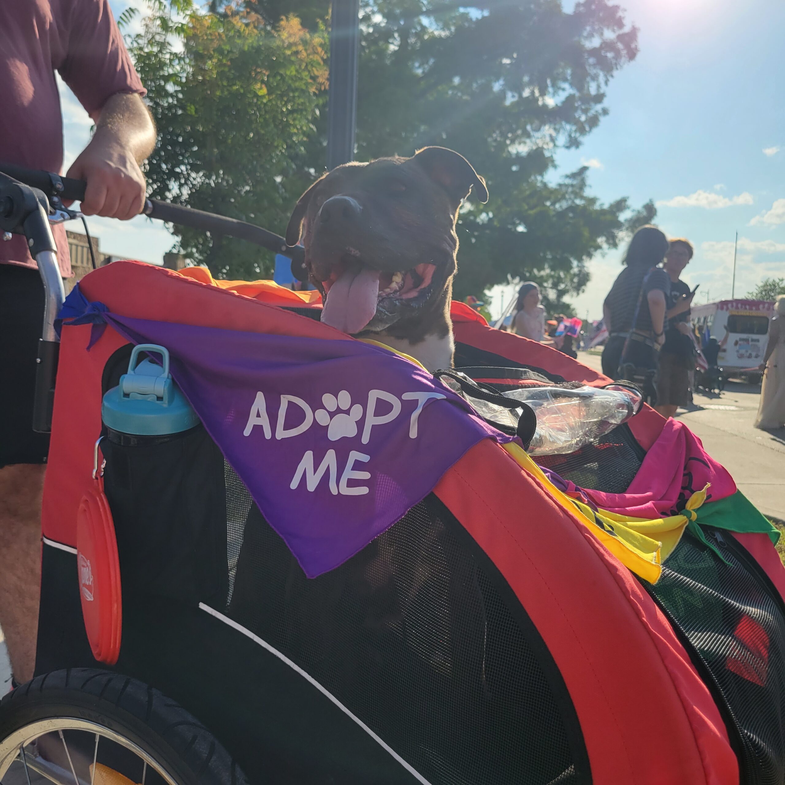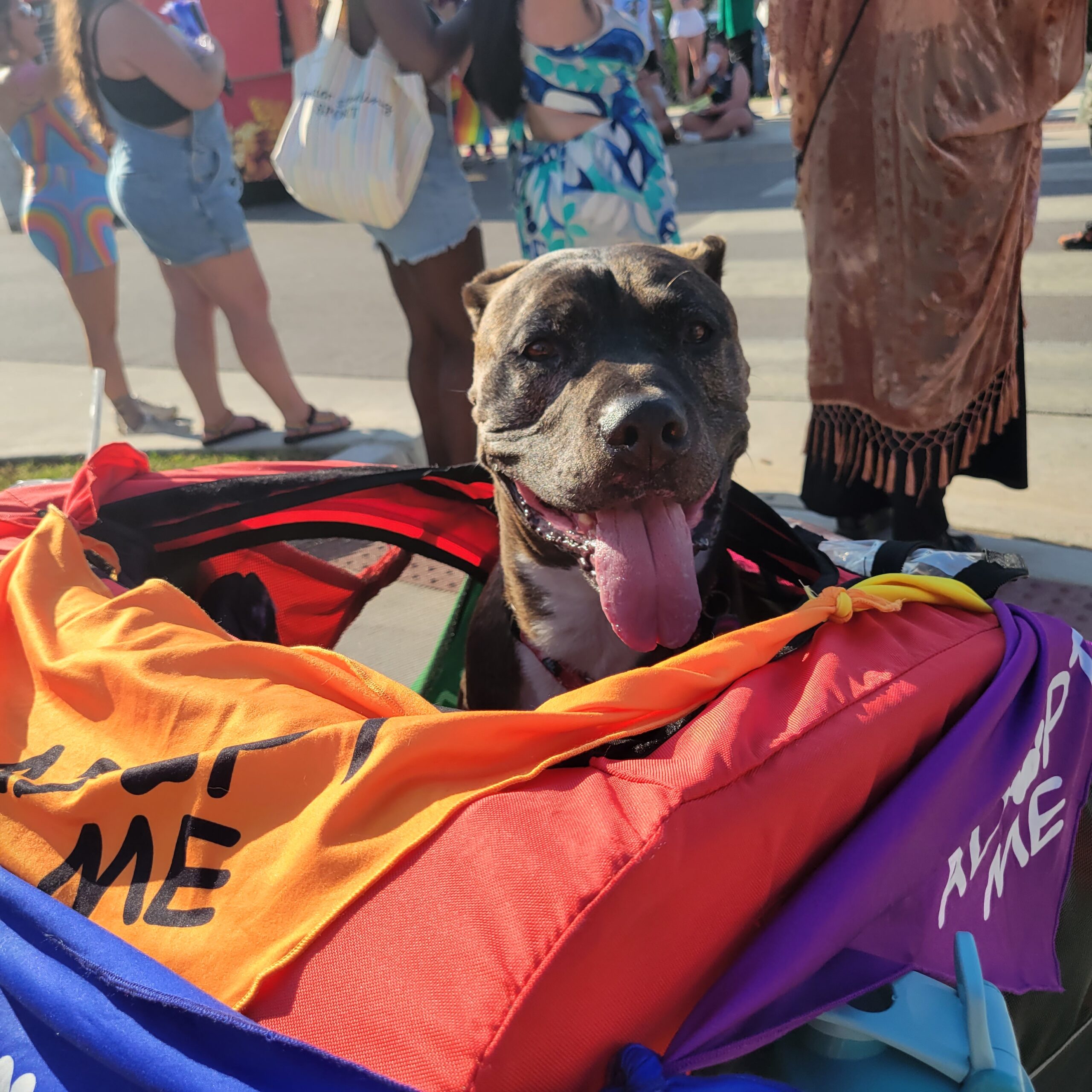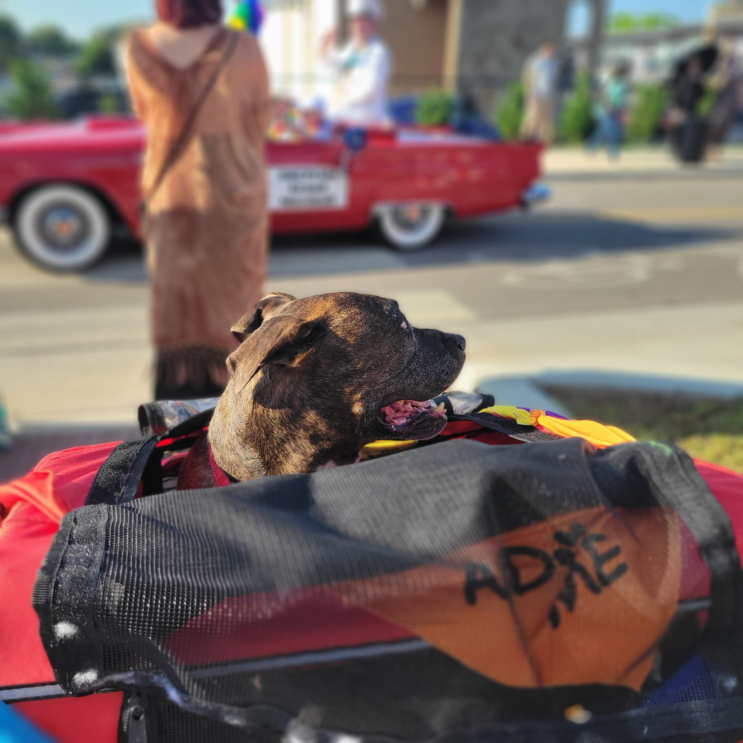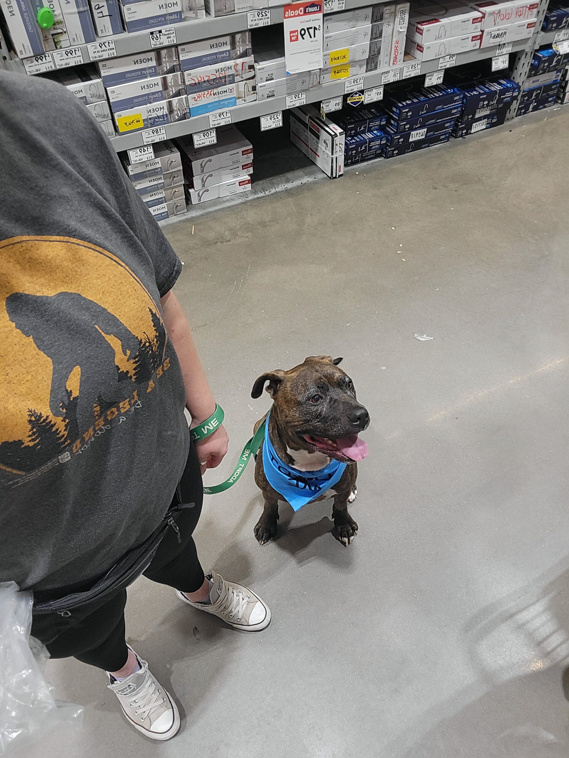 I found myself inside of a pet store when I was lost, it seemed like a good place to go to get help so I walked right in! The store worked quickly to contact We're OK Foundation and they took me in. I am housebroken and do great with my canine & feline foster siblings. I love all people, even kids and I especially love to show them my tricks! I love car rides, sitting shot-gun is my favorite and even better if there are heated seats! I do best with a yard with privacy fencing but I’d also be perfectly happy going on walks instead since Im pretty low energy. My favorite games are tug of war and catch but I do like the occasional game of fetch. I really like dressing up too so I hope to having a family with matching PJs some day!