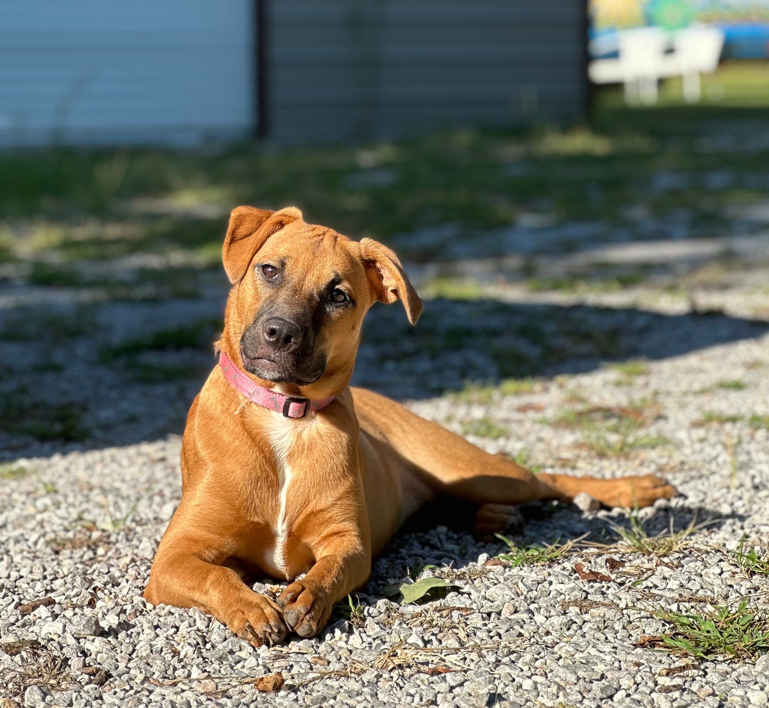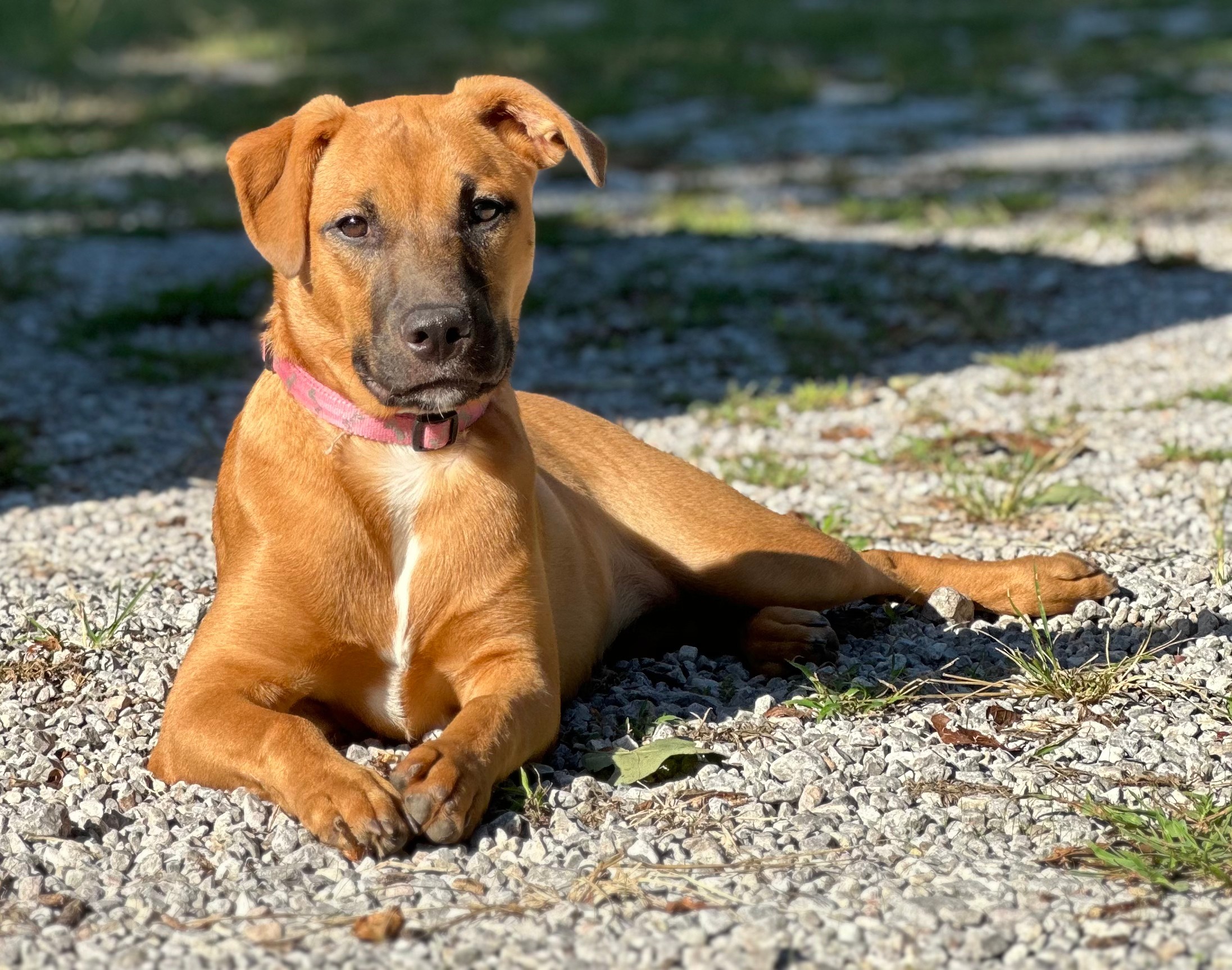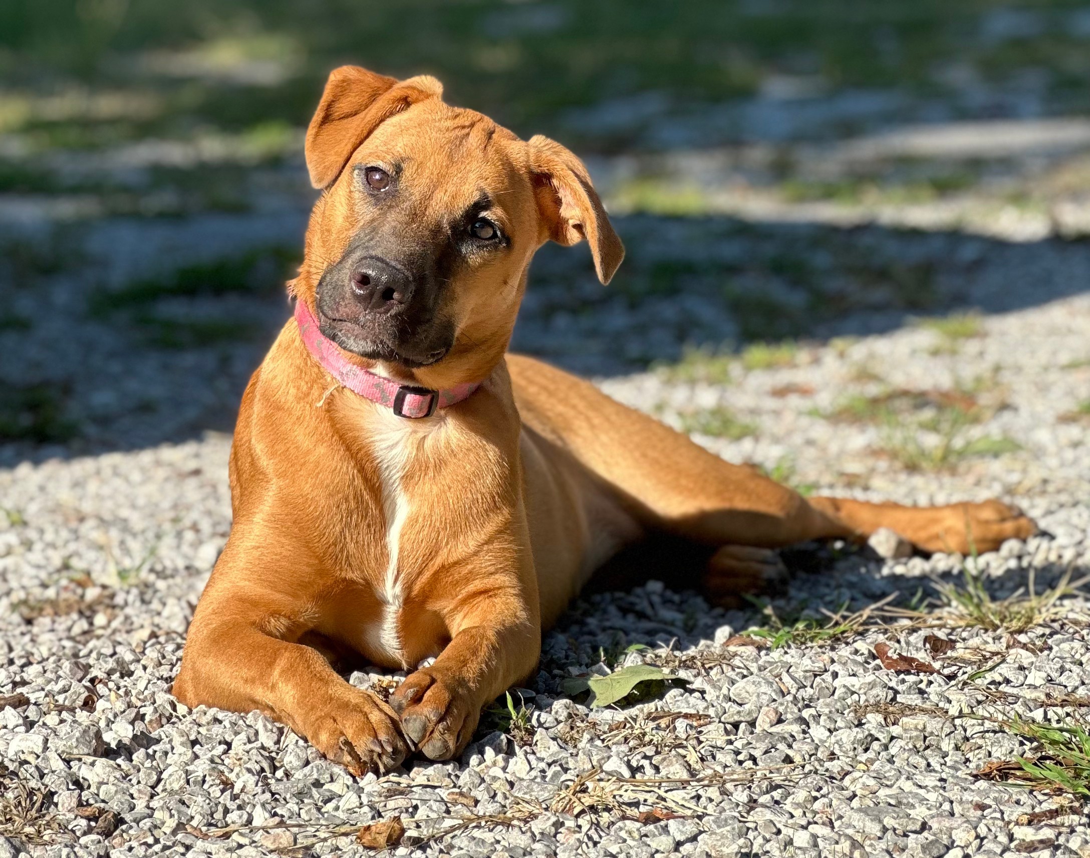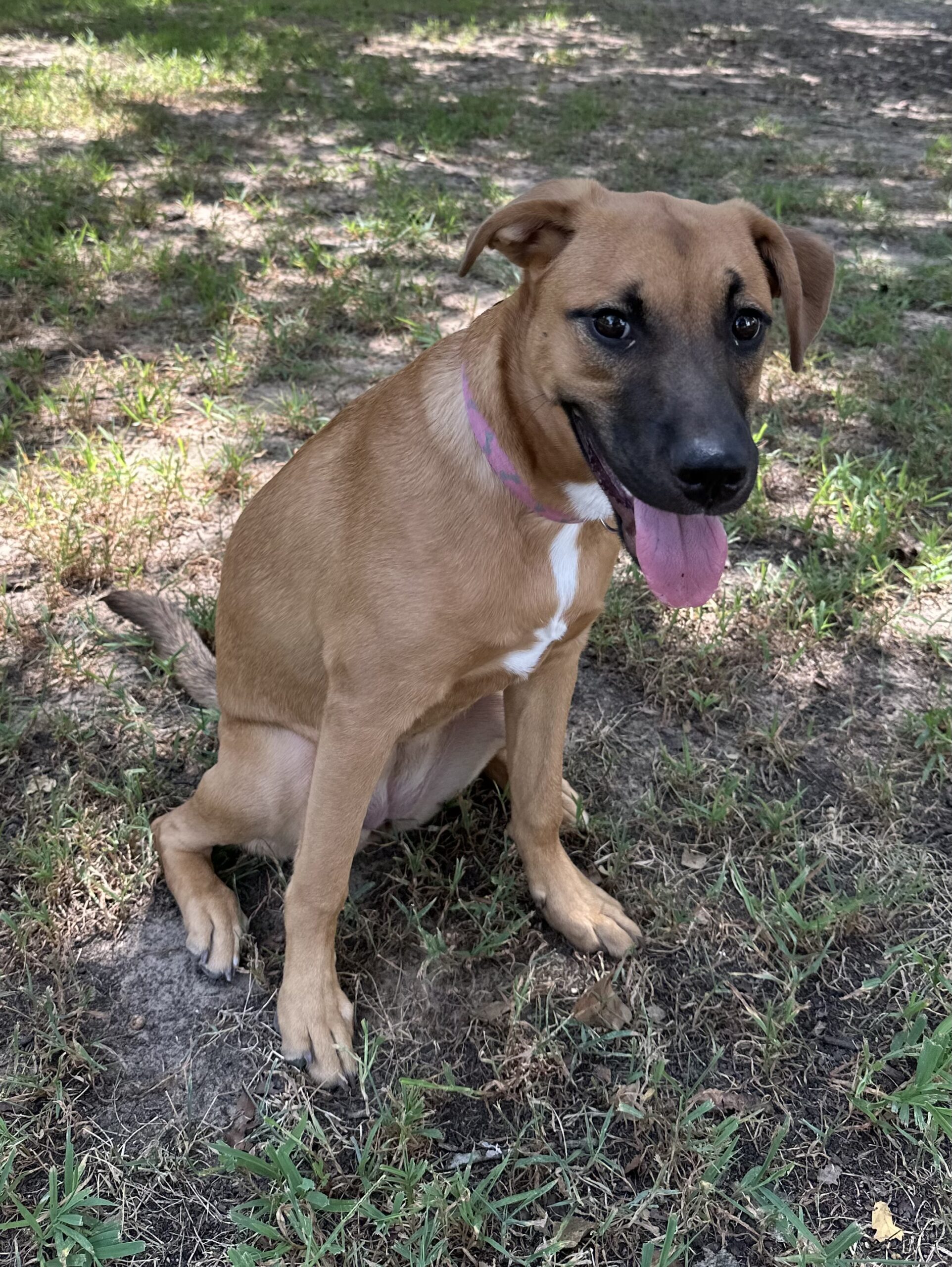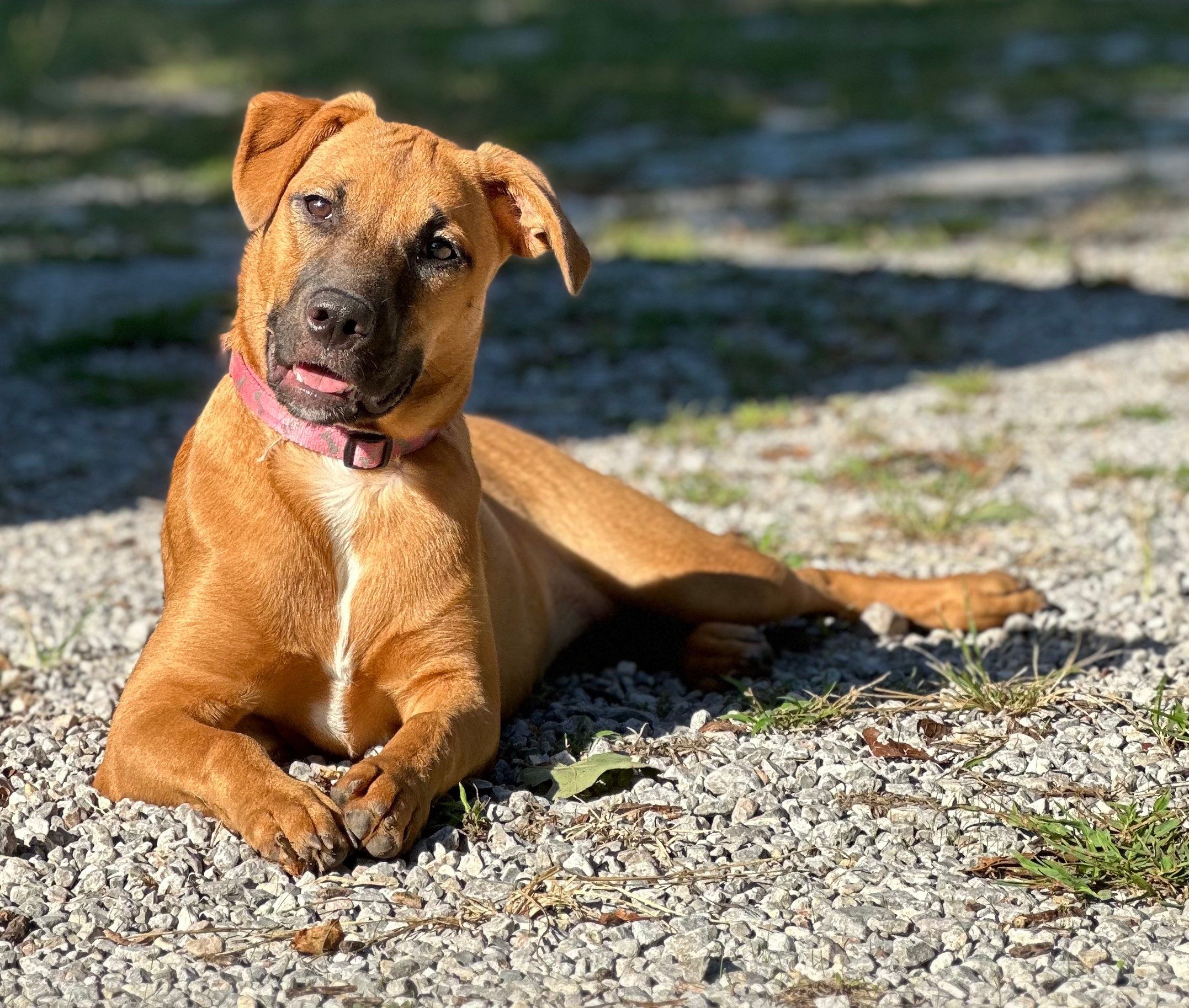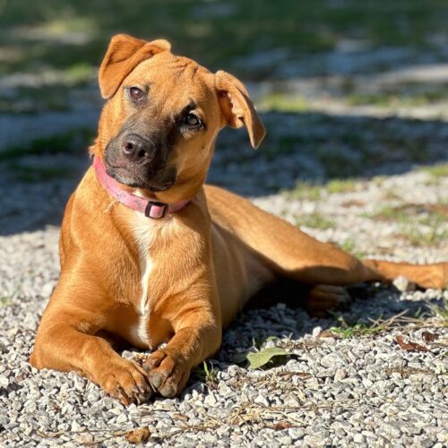 Meet Clover: the free spirit of the bunch! At just 6 months old, Clover is the kind of pup who makes her own fun wherever she goes. The kids in her foster home say if she were a person, she’d be a barefoot hippie! Always down to romp, explore, and live life on her own goofy terms.She’s smart ( housebroken and crate trained!), sweet as can be, and always up for an adventure. Whether it’s zoomies through the grass, chasing butterflies, or just vibing with her people, Clover brings the good energy wherever she goes. She’d thrive in an active home or somewhere with wide open spaces, anywhere she can be her goofy, joyful self.