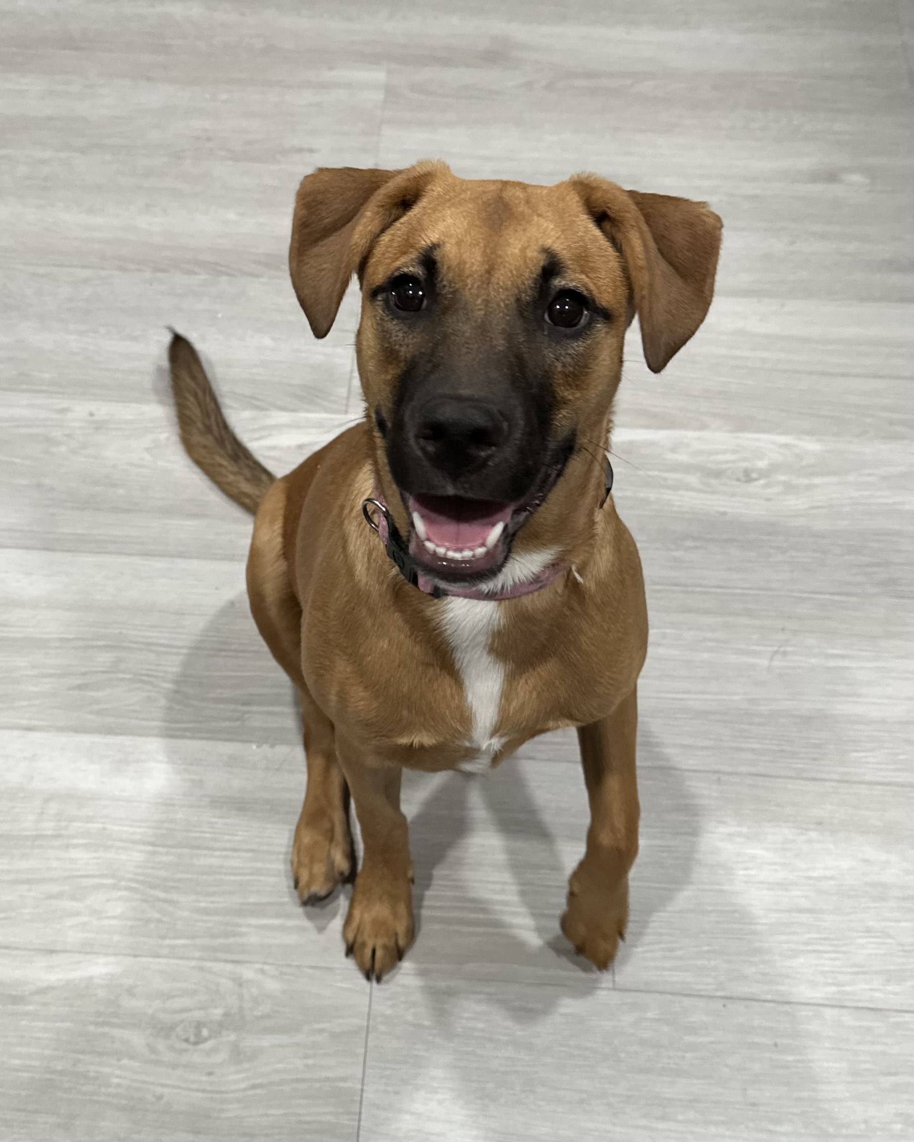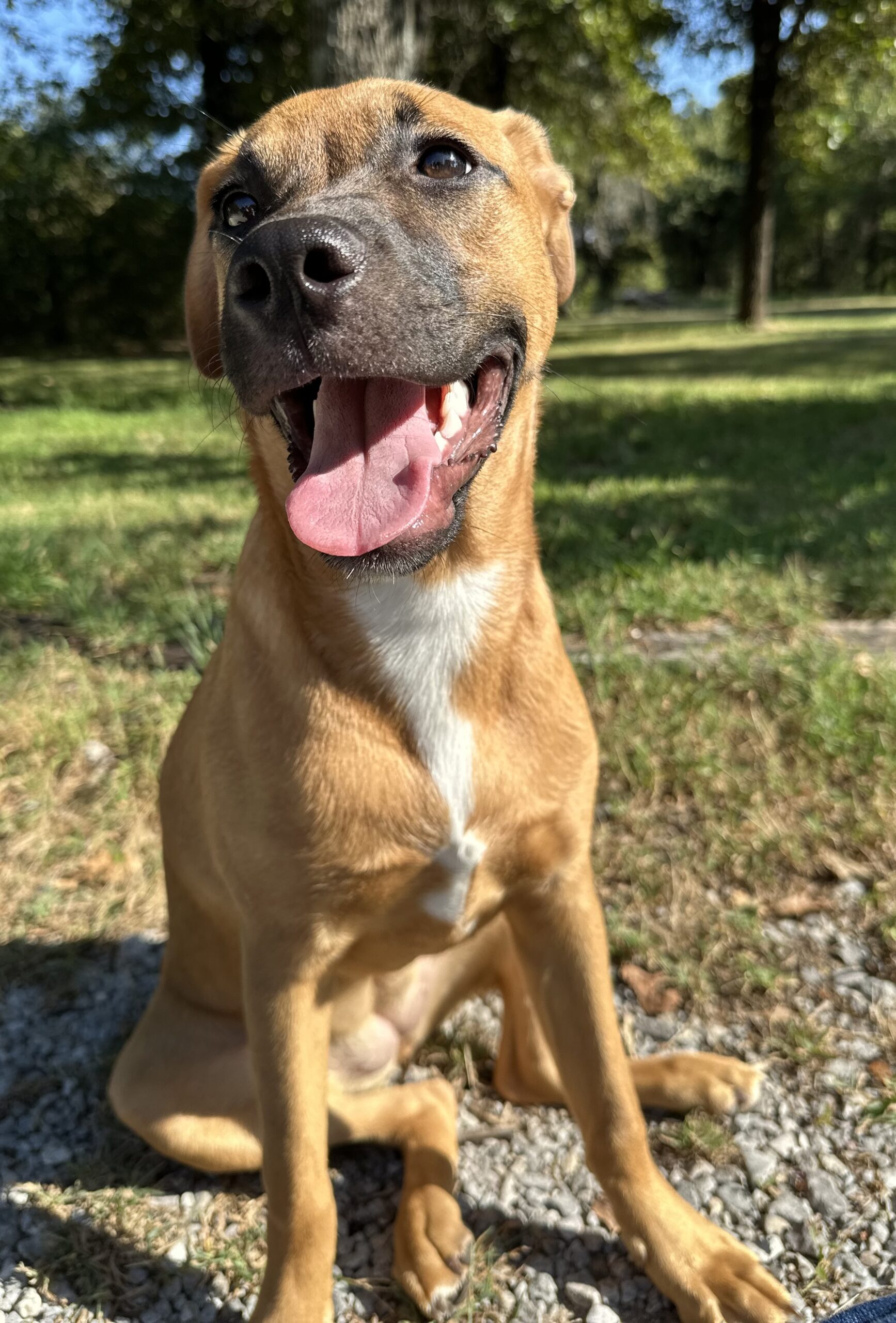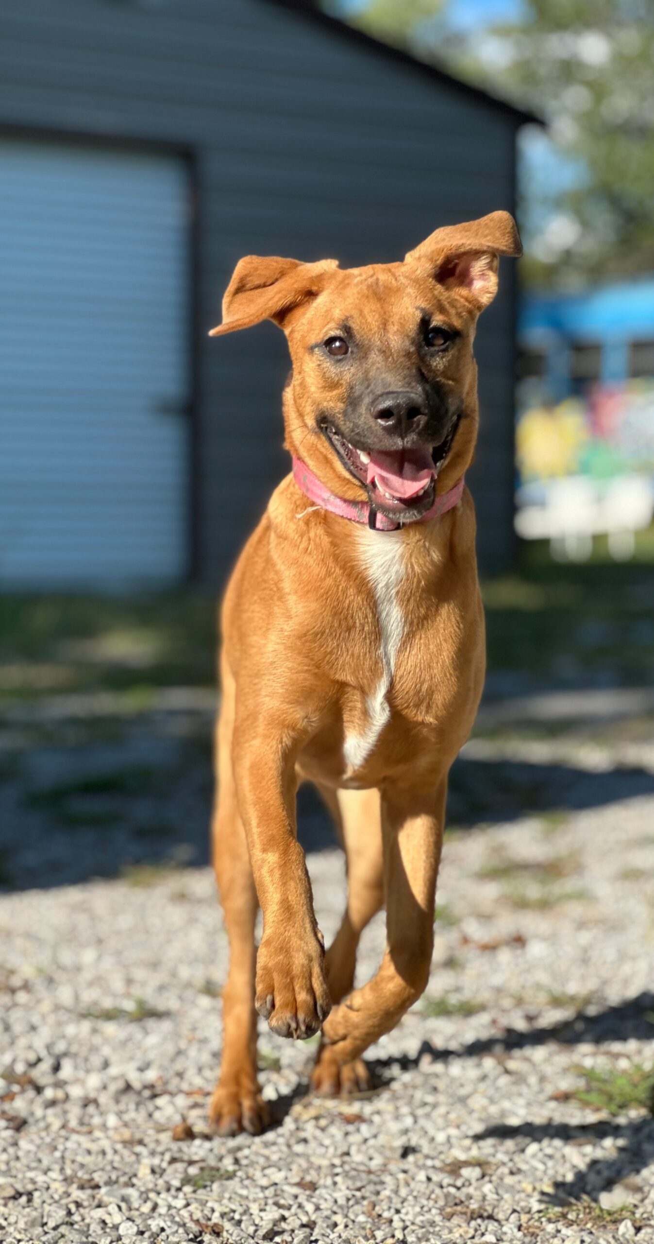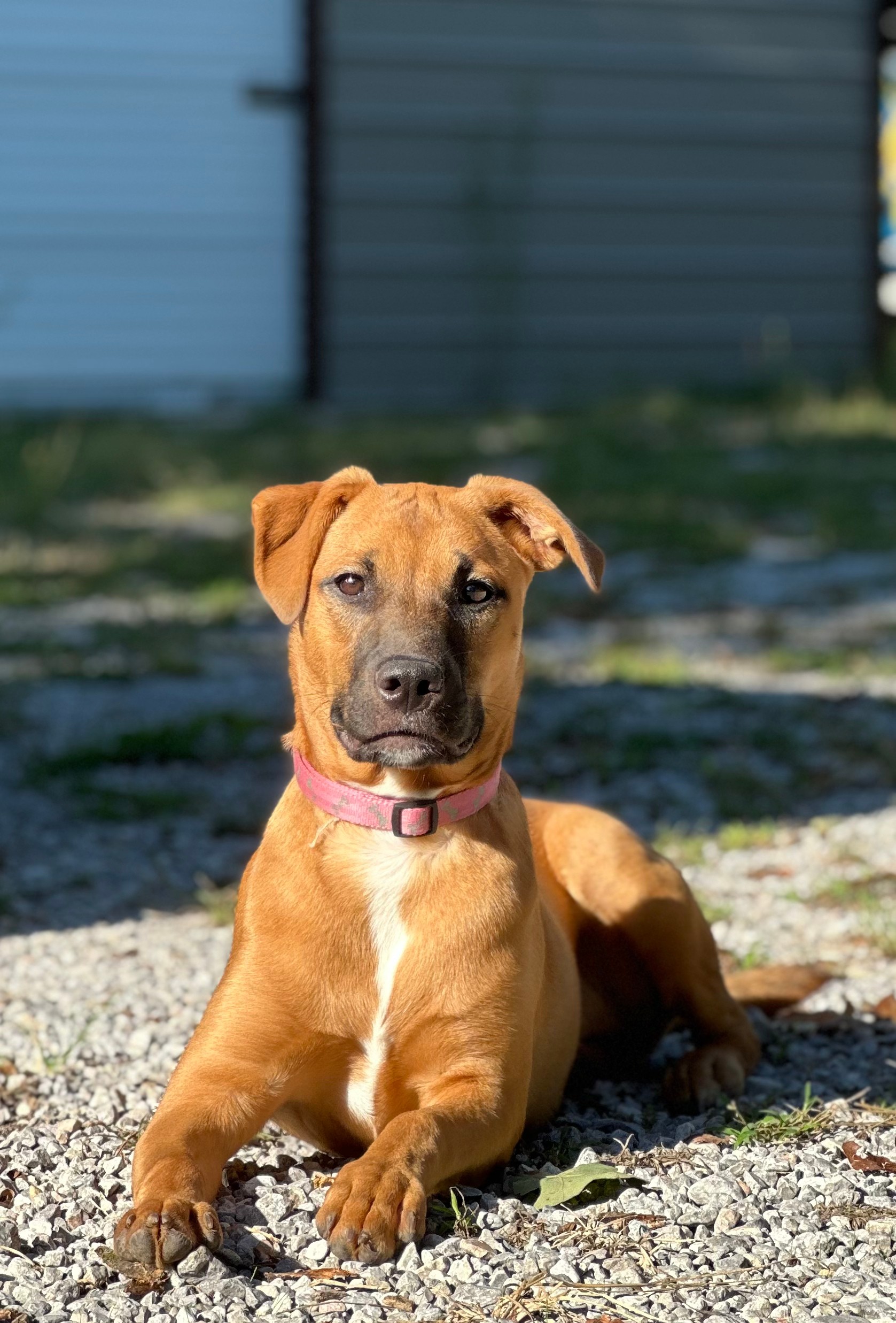 Meet Clover: the free spirit of the bunch! At just 6 months old, Clover is the kind of pup who makes her own fun wherever she goes. The kids in her foster home say if she were a person, she’d be a barefoot hippie! Always down to romp, explore, and live life on her own goofy terms.She’s smart ( housebroken and crate trained!), sweet as can be, and always up for an adventure. Whether it’s zoomies through the grass, chasing butterflies, or just vibing with her people, Clover brings the good energy wherever she goes. She’d thrive in an active home or somewhere with wide open spaces, anywhere she can be her goofy, joyful self.