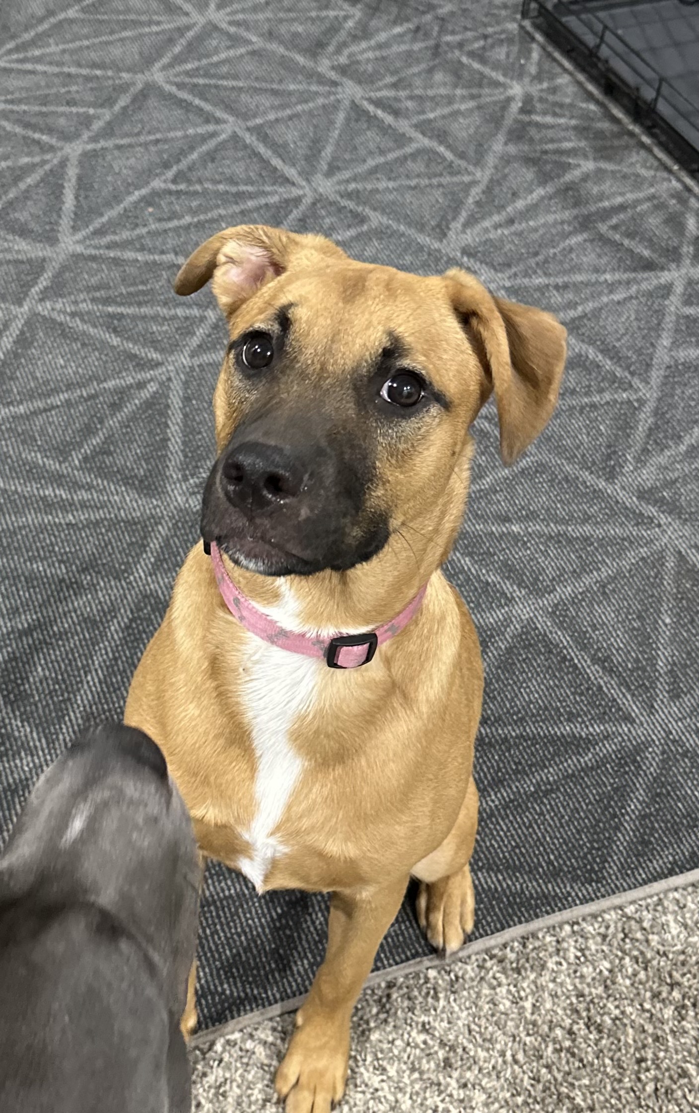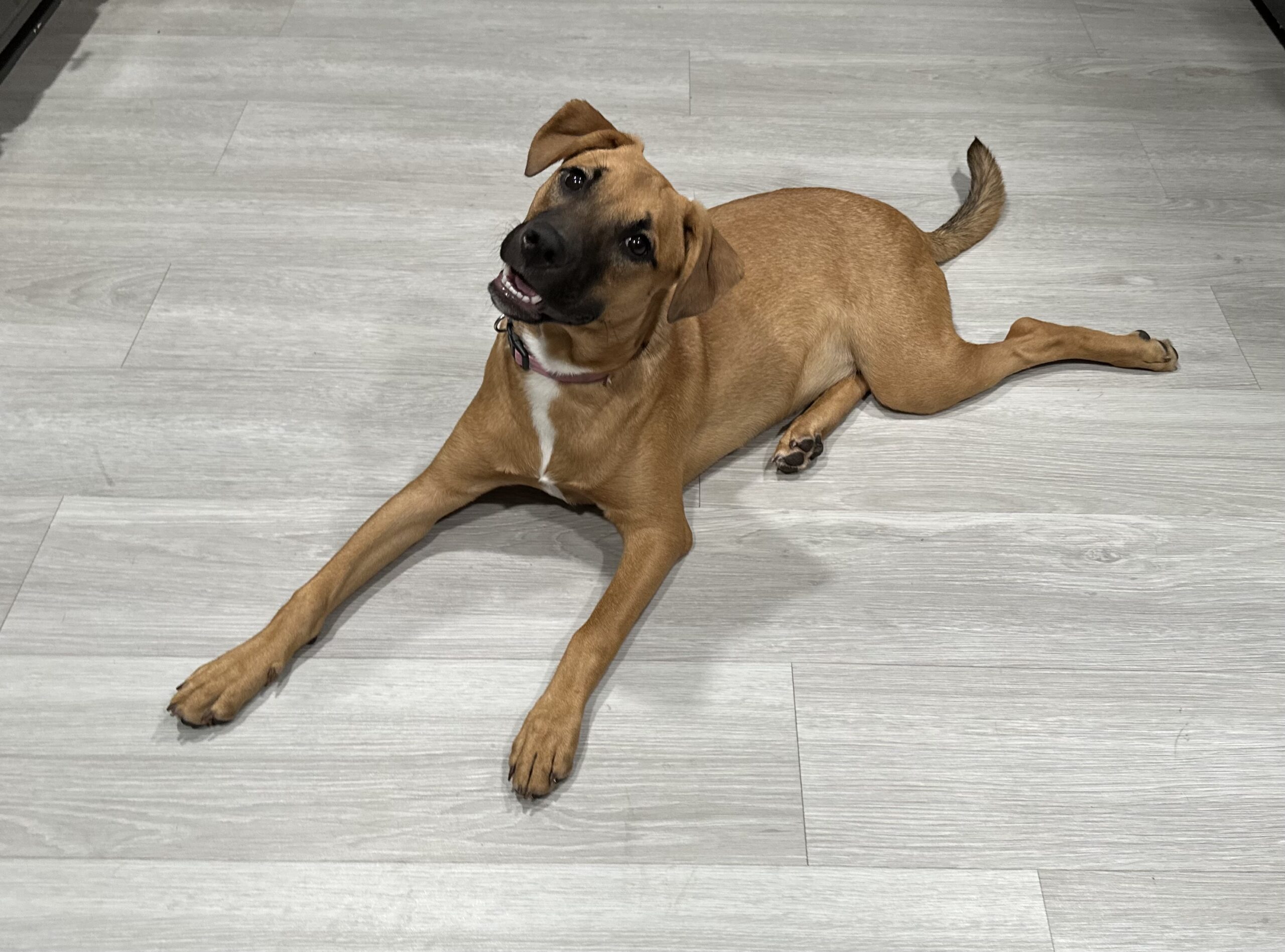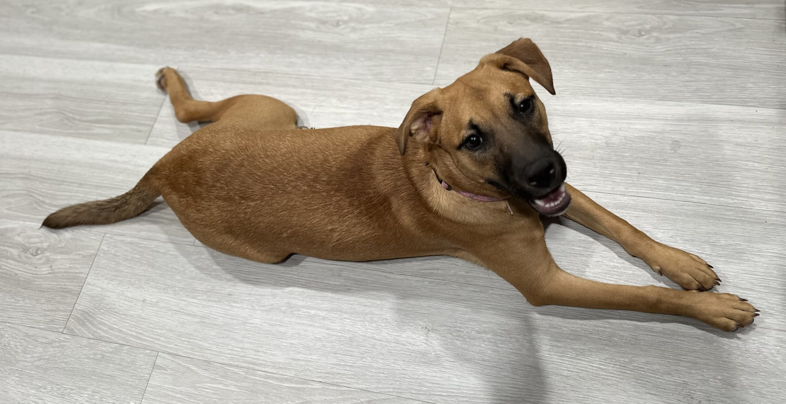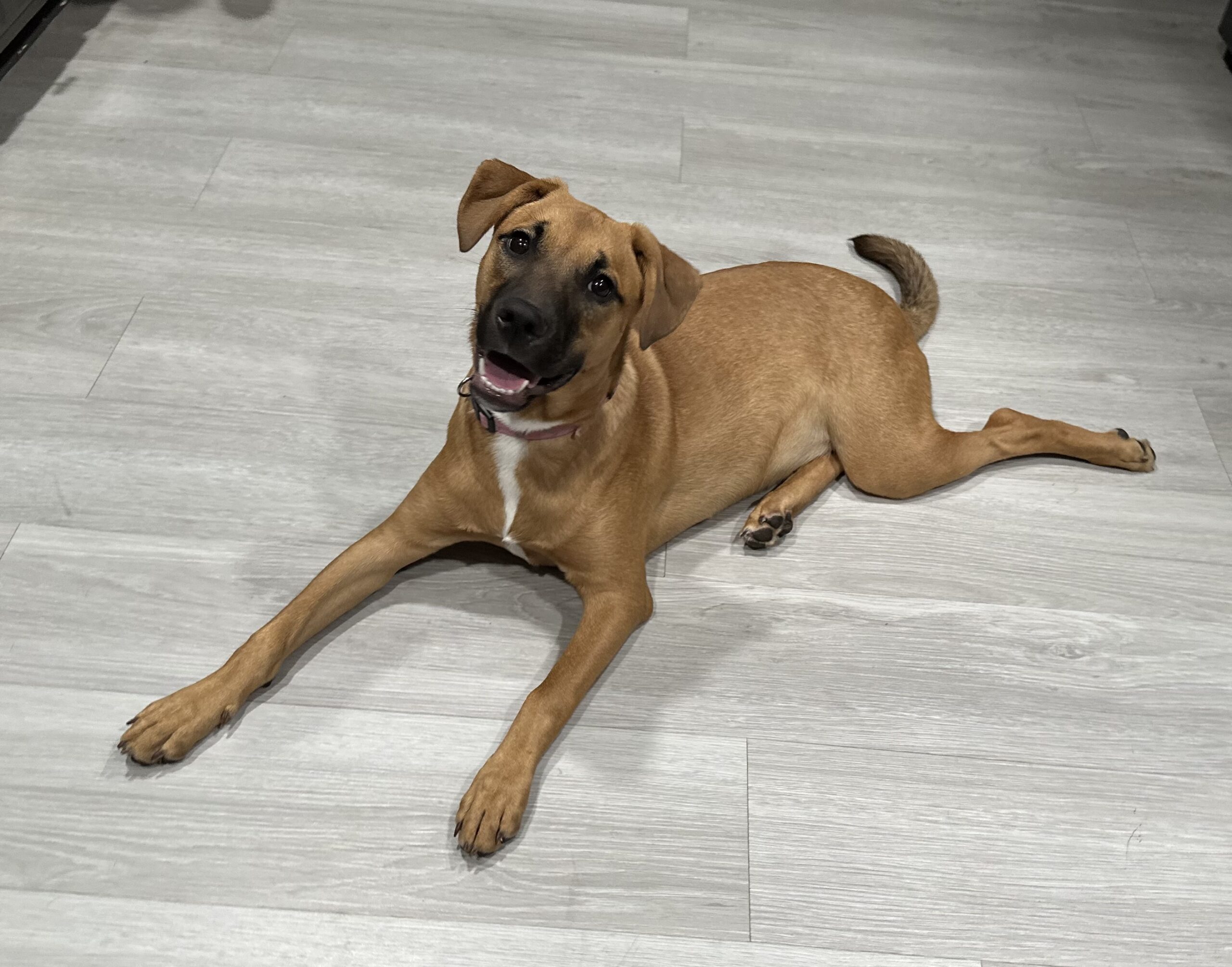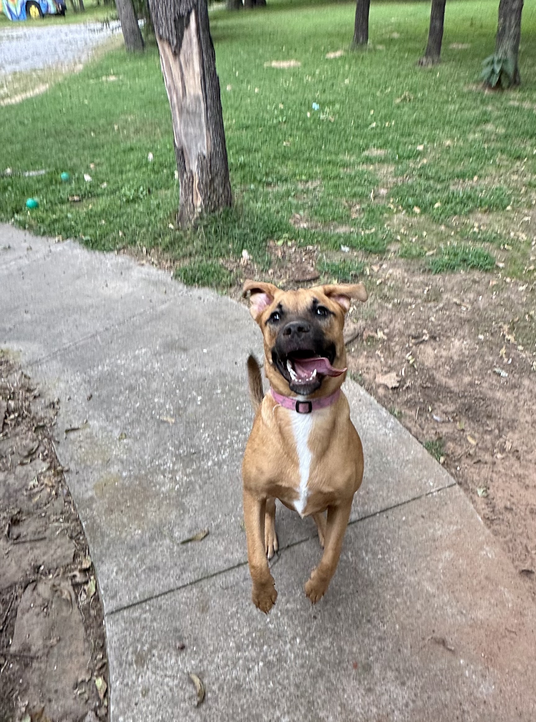 Meet Clover: the free spirit of the bunch! At just 6 months old, Clover is the kind of pup who makes her own fun wherever she goes. The kids in her foster home say if she were a person, she’d be a barefoot hippie! Always down to romp, explore, and live life on her own goofy terms.She’s smart ( housebroken and crate trained!), sweet as can be, and always up for an adventure. Whether it’s zoomies through the grass, chasing butterflies, or just vibing with her people, Clover brings the good energy wherever she goes. She’d thrive in an active home or somewhere with wide open spaces, anywhere she can be her goofy, joyful self.