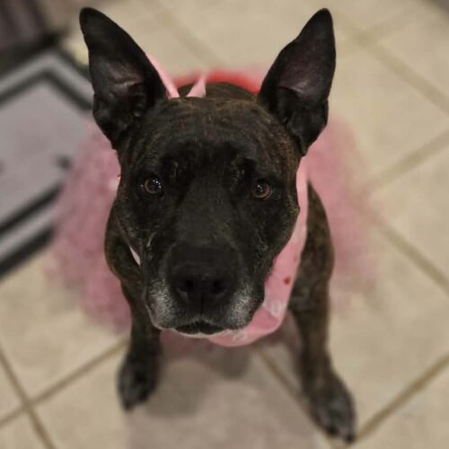 Honey Lee is SO happy to be with people and she loves humans of all ages! She’s a sweet girl who adores hugs, belly rubs, snuggles, and playing with stuffies and chew bones. HLee makes a great companion in the car and does well on a leash! She is very treat motivated as well.