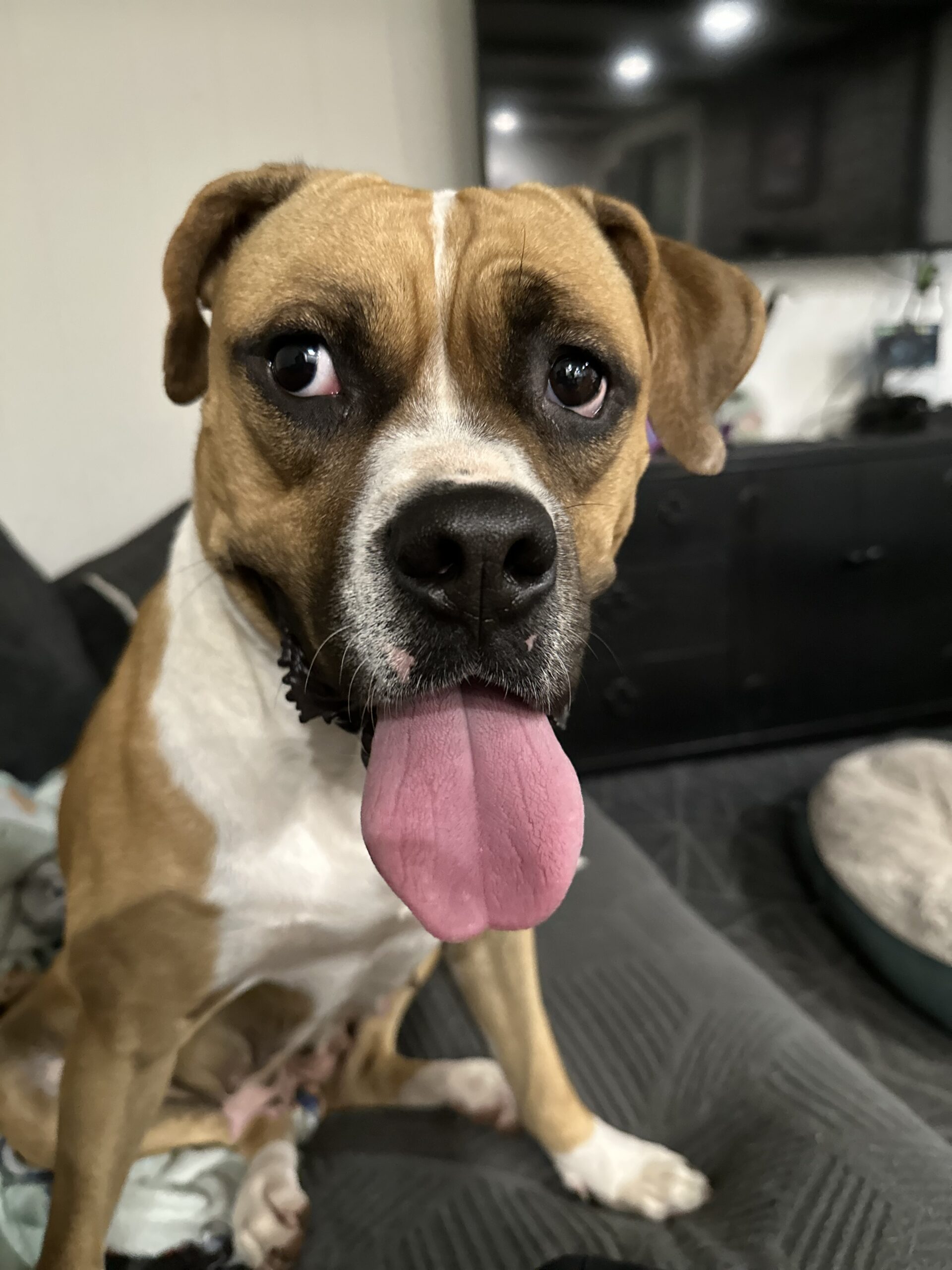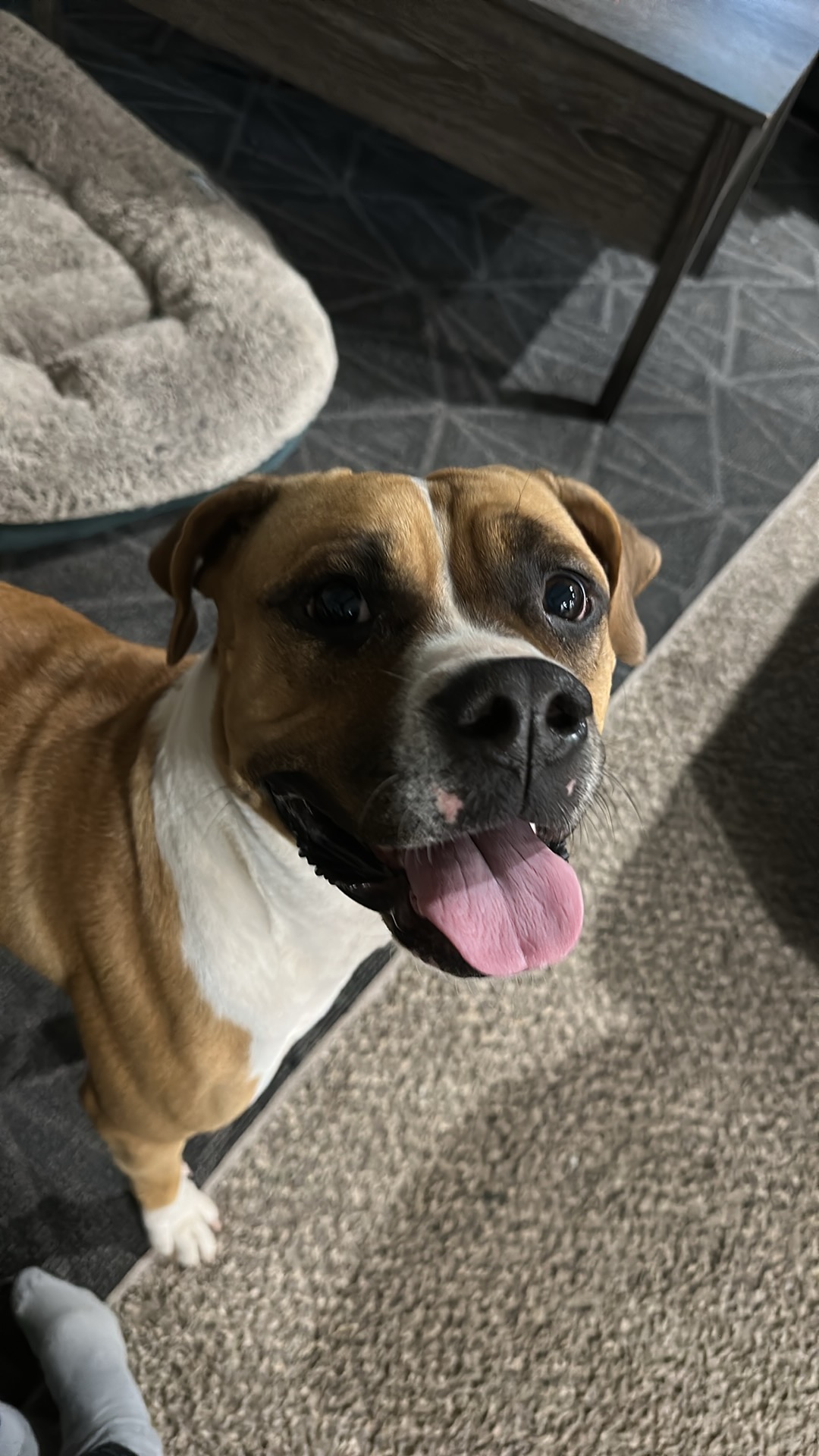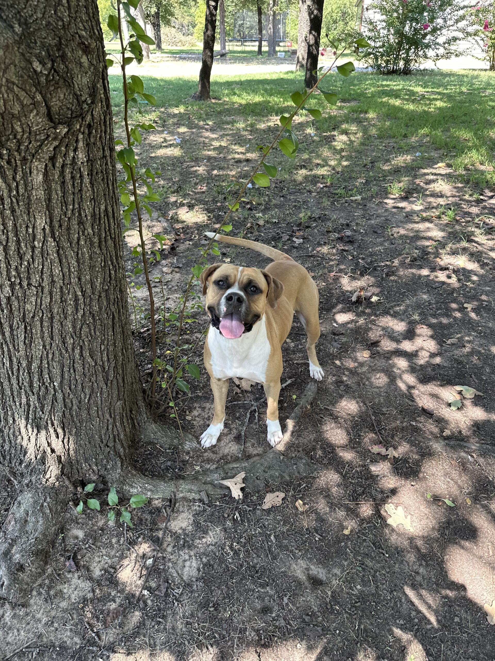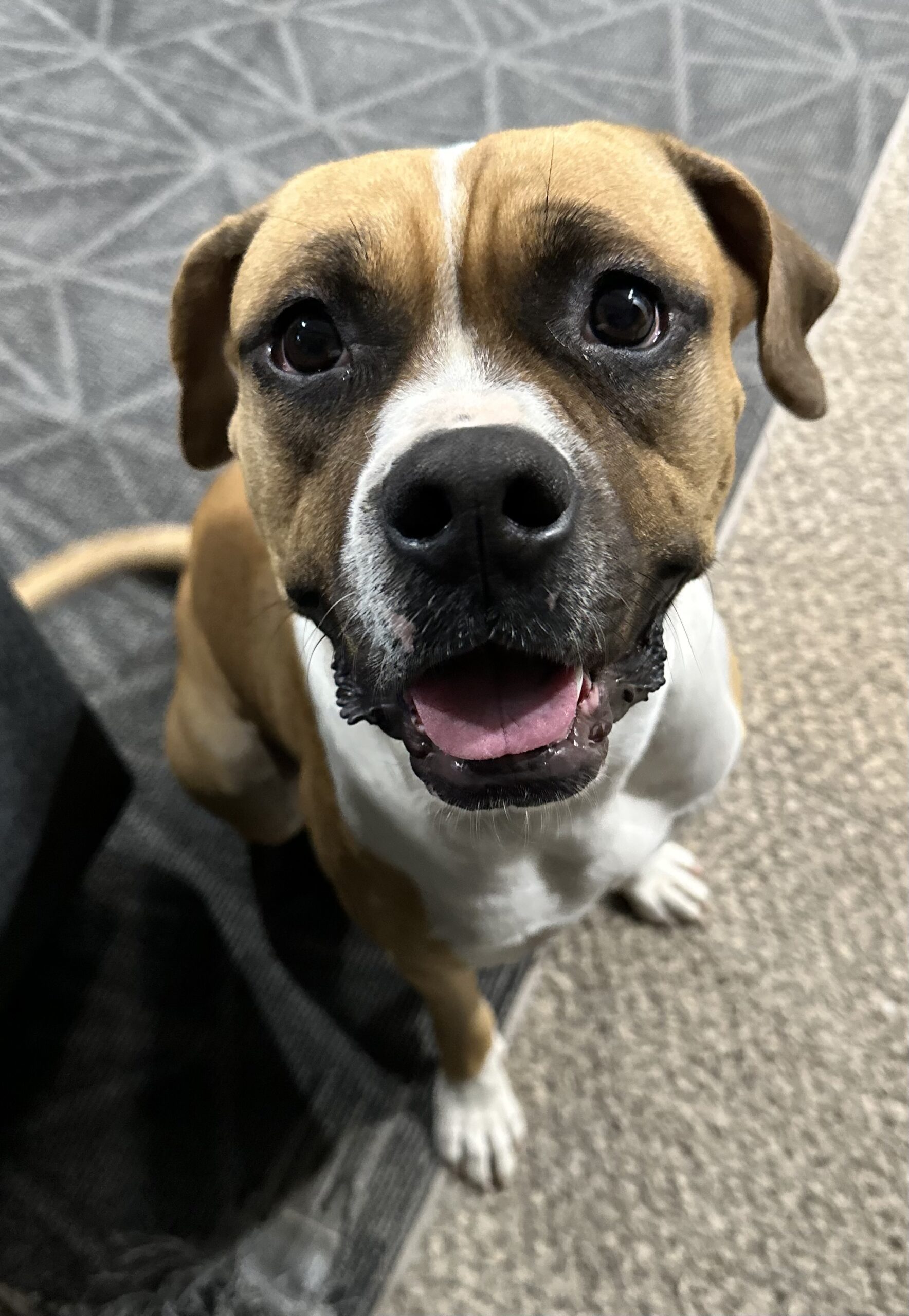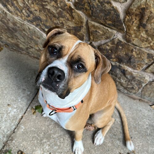 Lucy wandered up to a house in the country. She slept on their porch for several weeks before she was taken in by the rescue. She is very happy to now be living inside and receiving the love & care she deserves. She is a very sweet girl that loves car rides, treats and attention from people. She definitely has that silly, fun boxer personality. She is dog & cat friendly and loves kids too!