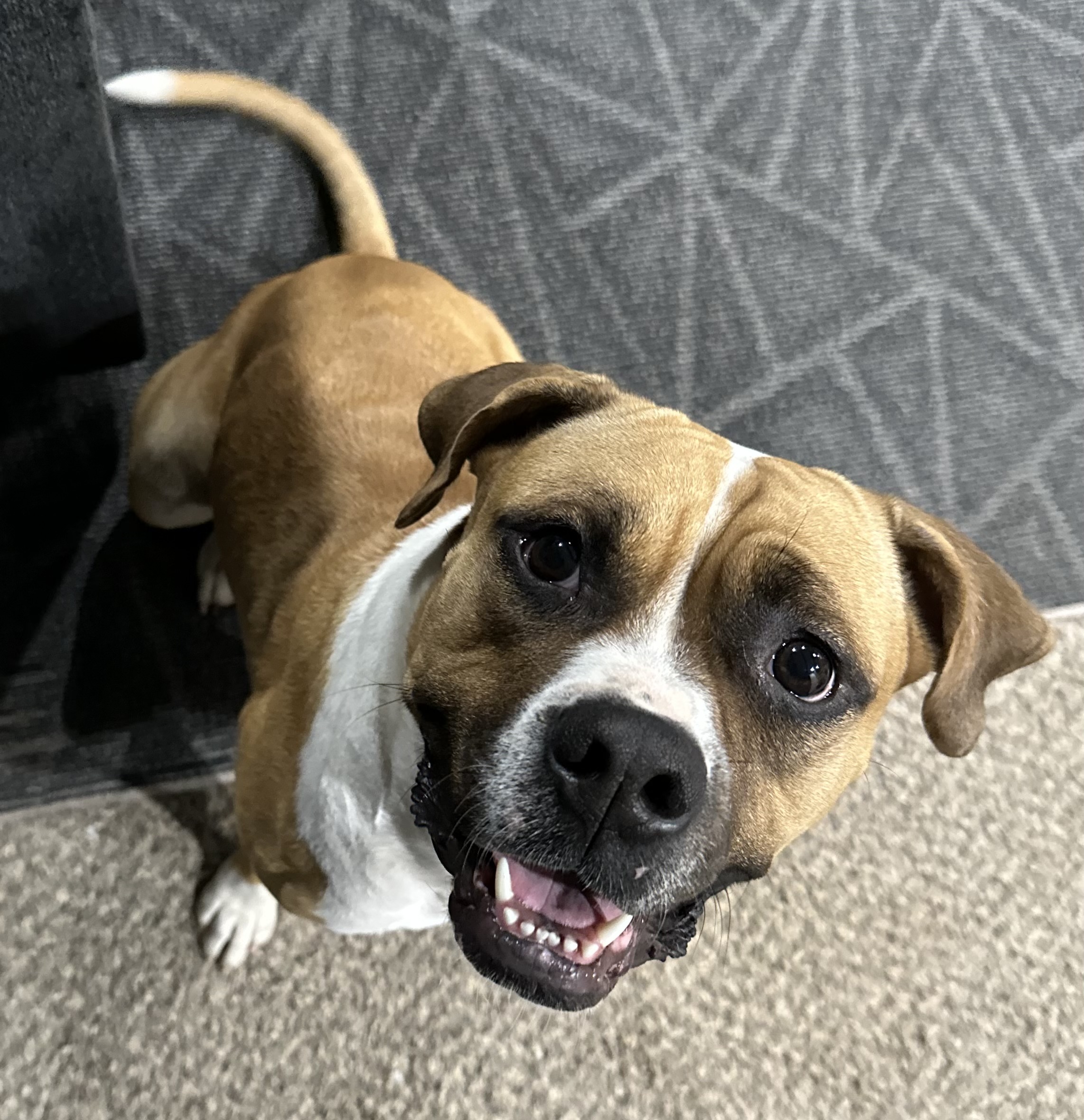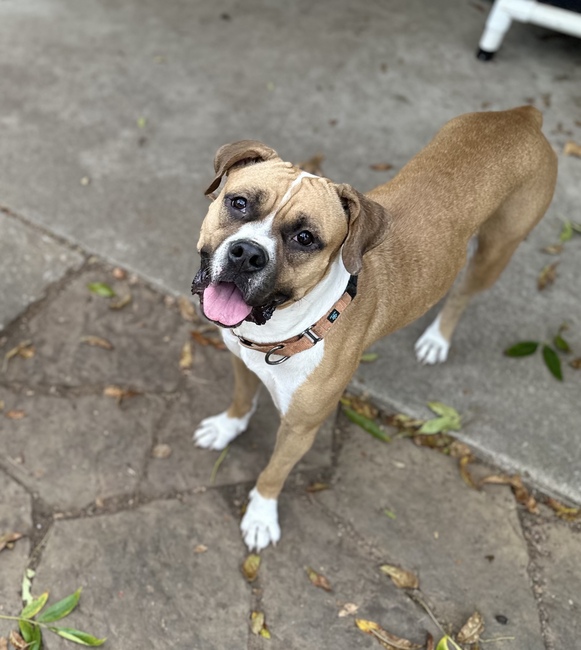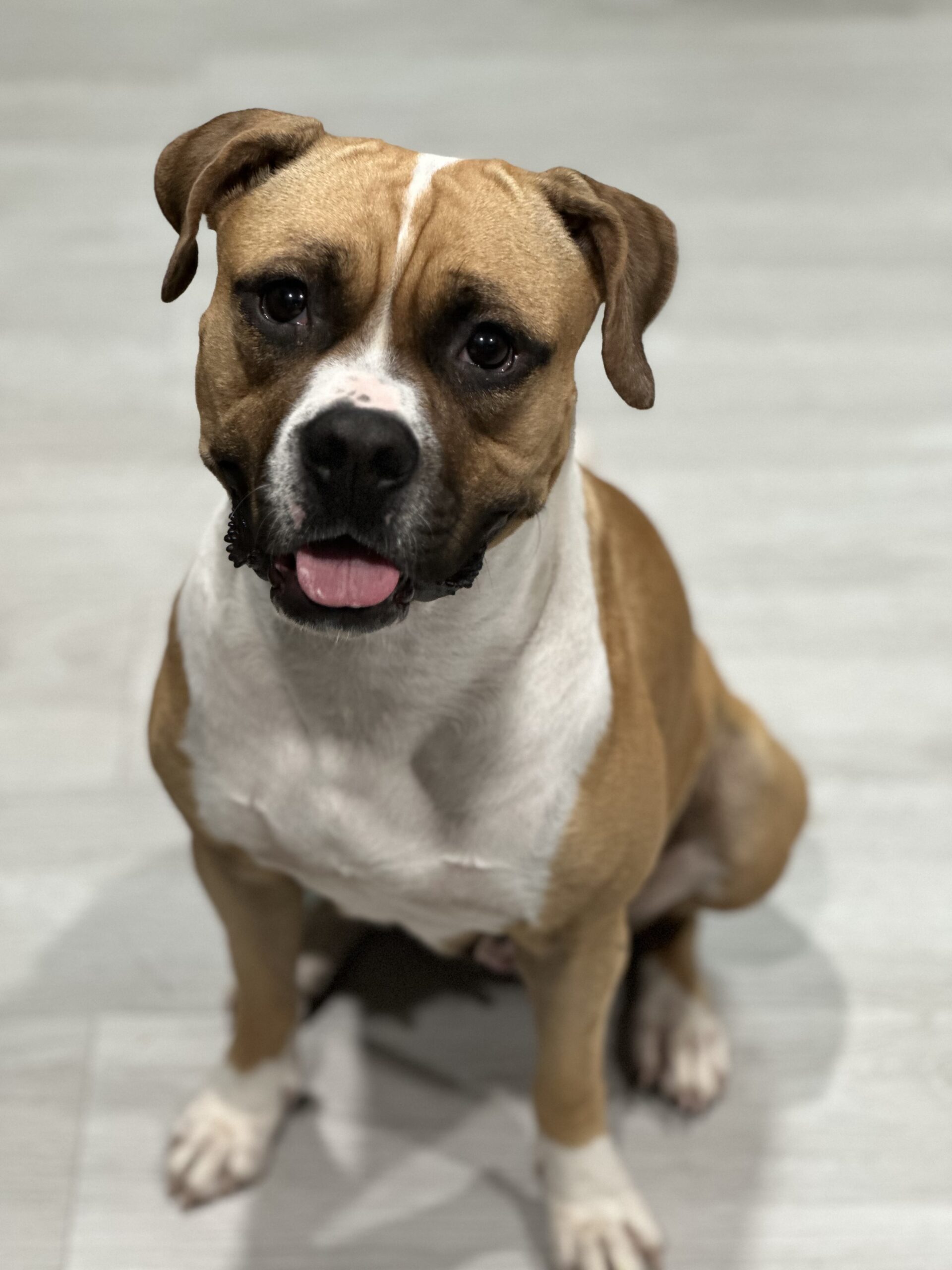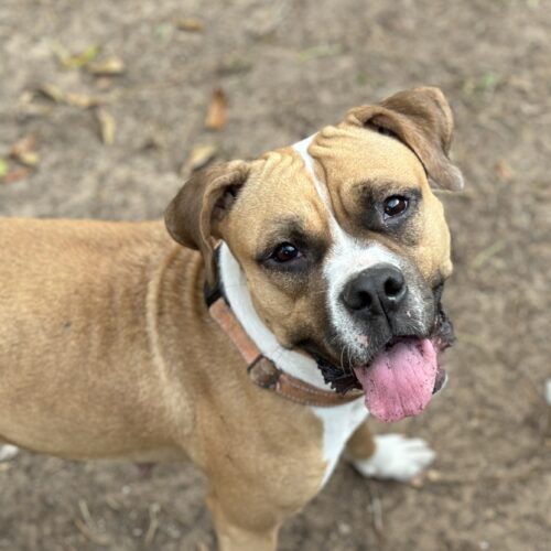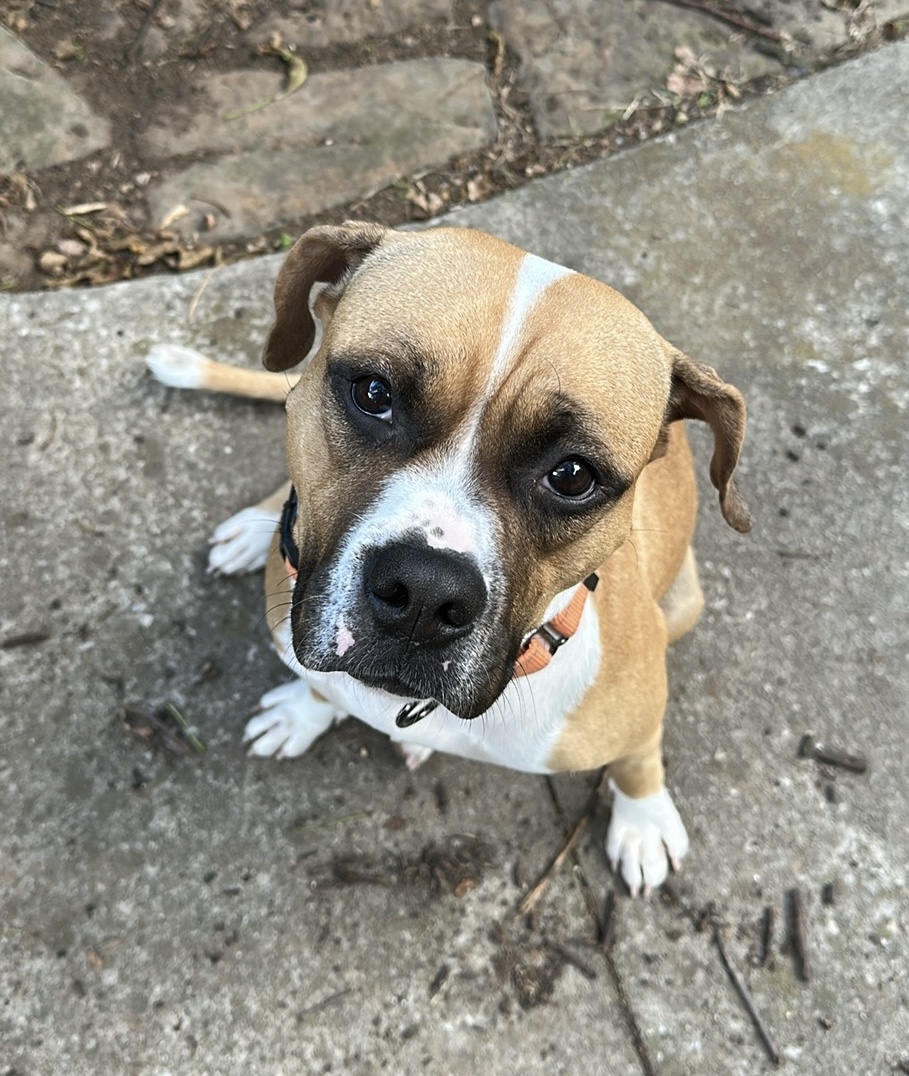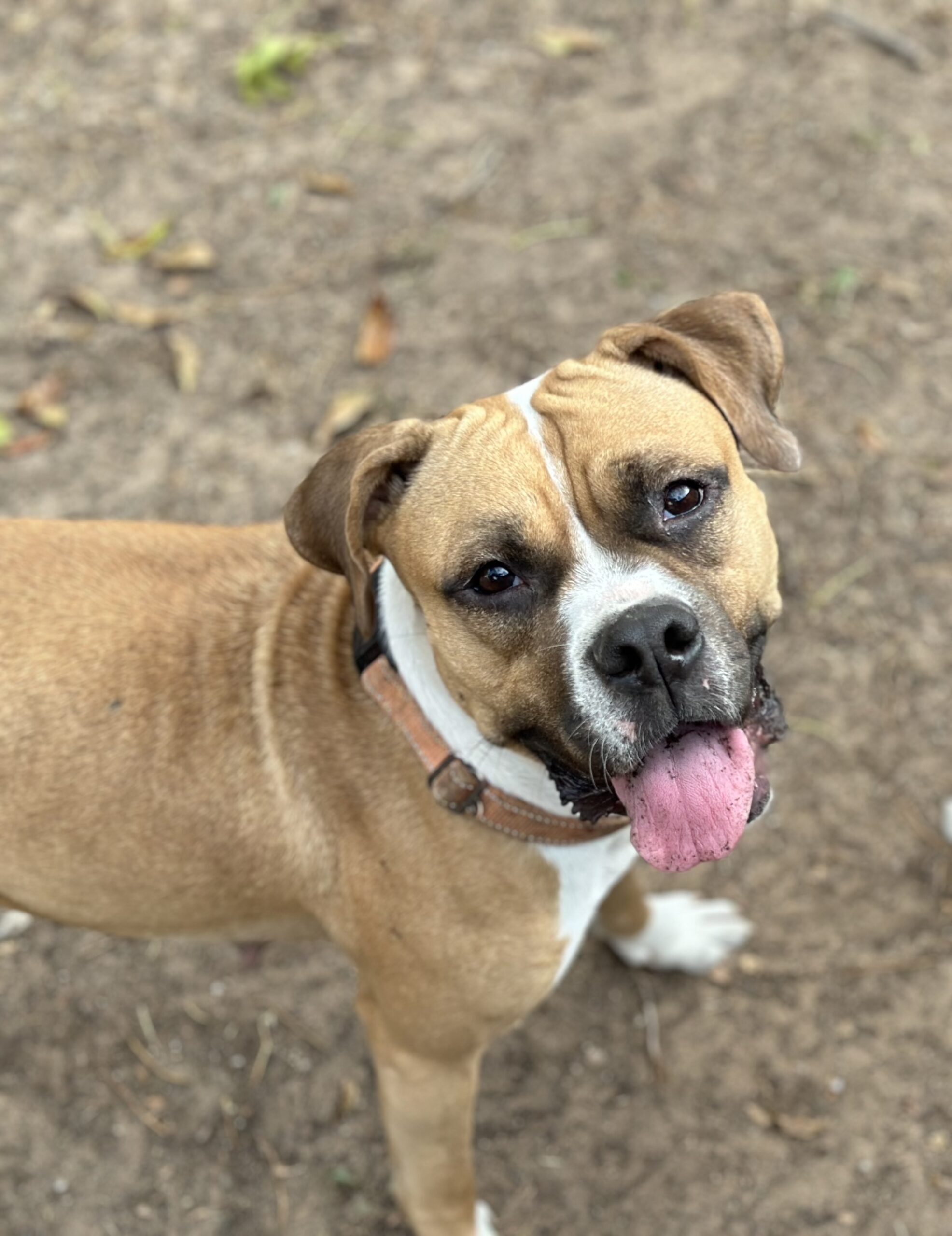 Lucy wandered up to a house in the country. She slept on their porch for several weeks before she was taken in by the rescue. She is very happy to now be living inside and receiving the love & care she deserves. She is a very sweet girl that loves car rides, treats and attention from people. She definitely has that silly, fun boxer personality. She is dog & cat friendly and loves kids too!