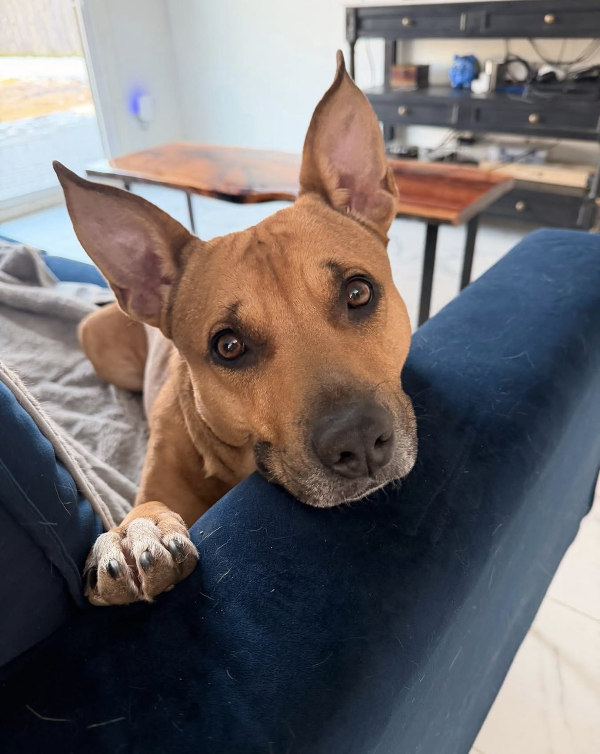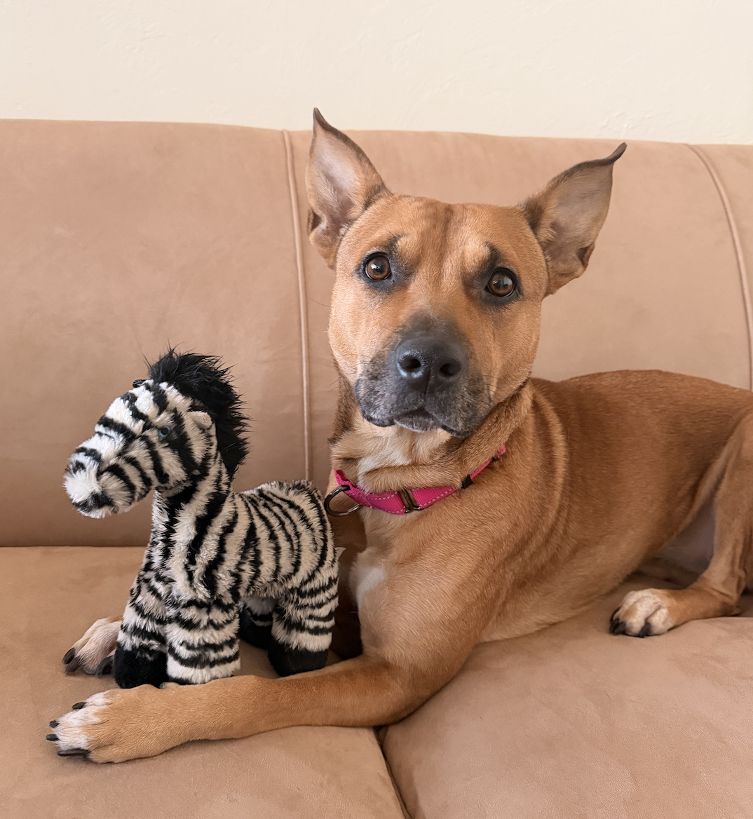 Miss Molly is a 5 year old, 47 pound Pitbull & German Shepherd mix with the sweetest soul. If cuddling were an Olympic sport, she’d take home the gold. Strangers don’t exist to Molly, only new friends. Her heart is as big as her ears!