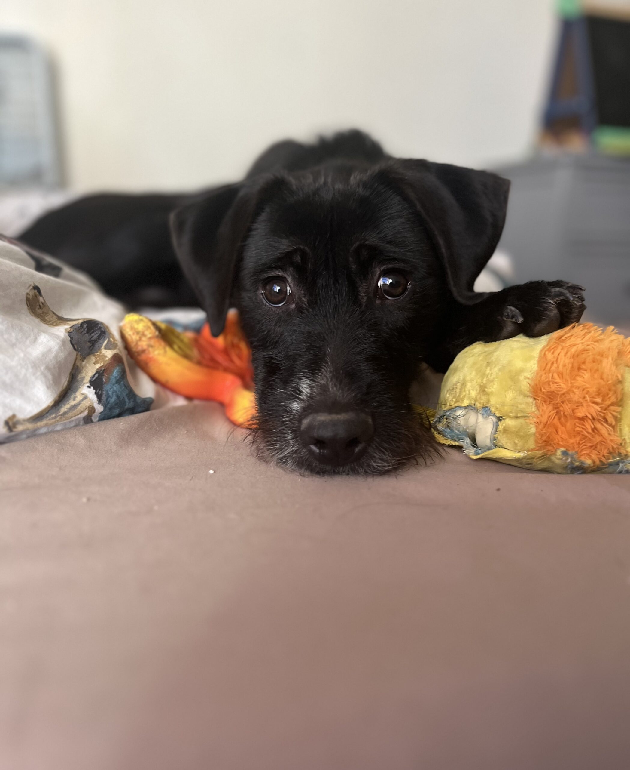 Raffi is approximately 10 months old and 40 lbs. He is all long limbs at the moment. Raffi is a very sweet and intelligent boy. He is dog & child friendly. He is also housebroken and crate trained. He knows a few commands like sit, lay down and crate. He is affectionate but not a Velcro dog. He enjoys romping outside with dog friends, relaxing with a bone and car rides. He is looking for a family that will love him for his lifetime! He promises to be your best friend and companion. Raffi is microchipped, up to date on vaccinations and prevention and heartworm disease negative! He will be neutered prior to adoption.
