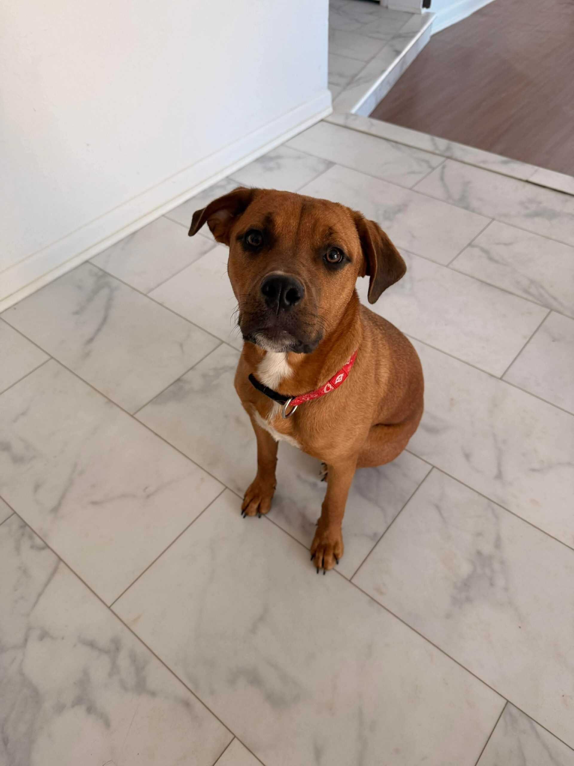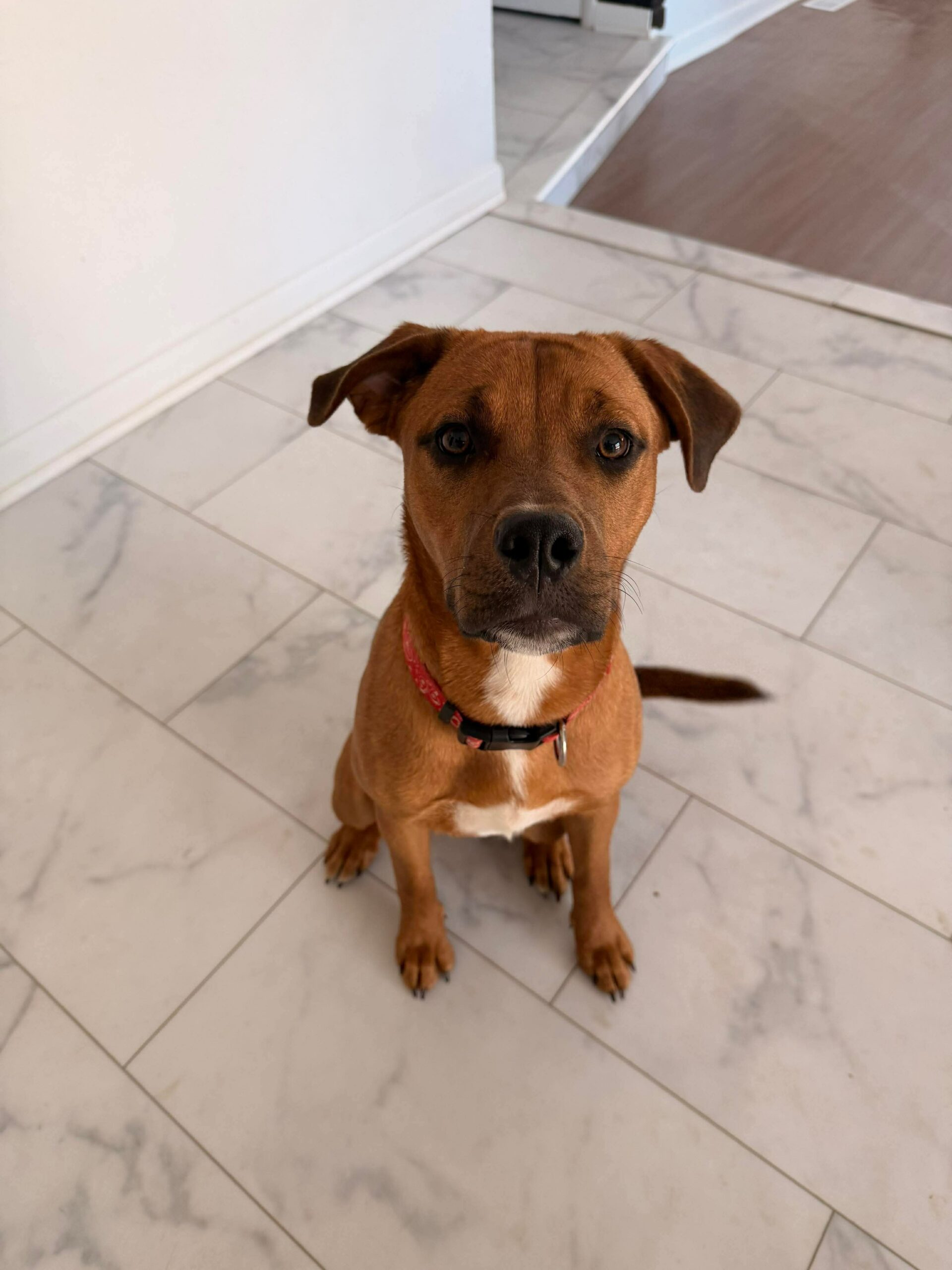 Rosie is very playful, loving, and cuddly! She loves to run around with other dogs with no resource guarding issues. She knows how to sit and paw, and she will never refuse belly rubs. She is potty trained and crate trained and goes into her crate so nicely when asked and is perfectly quiet.