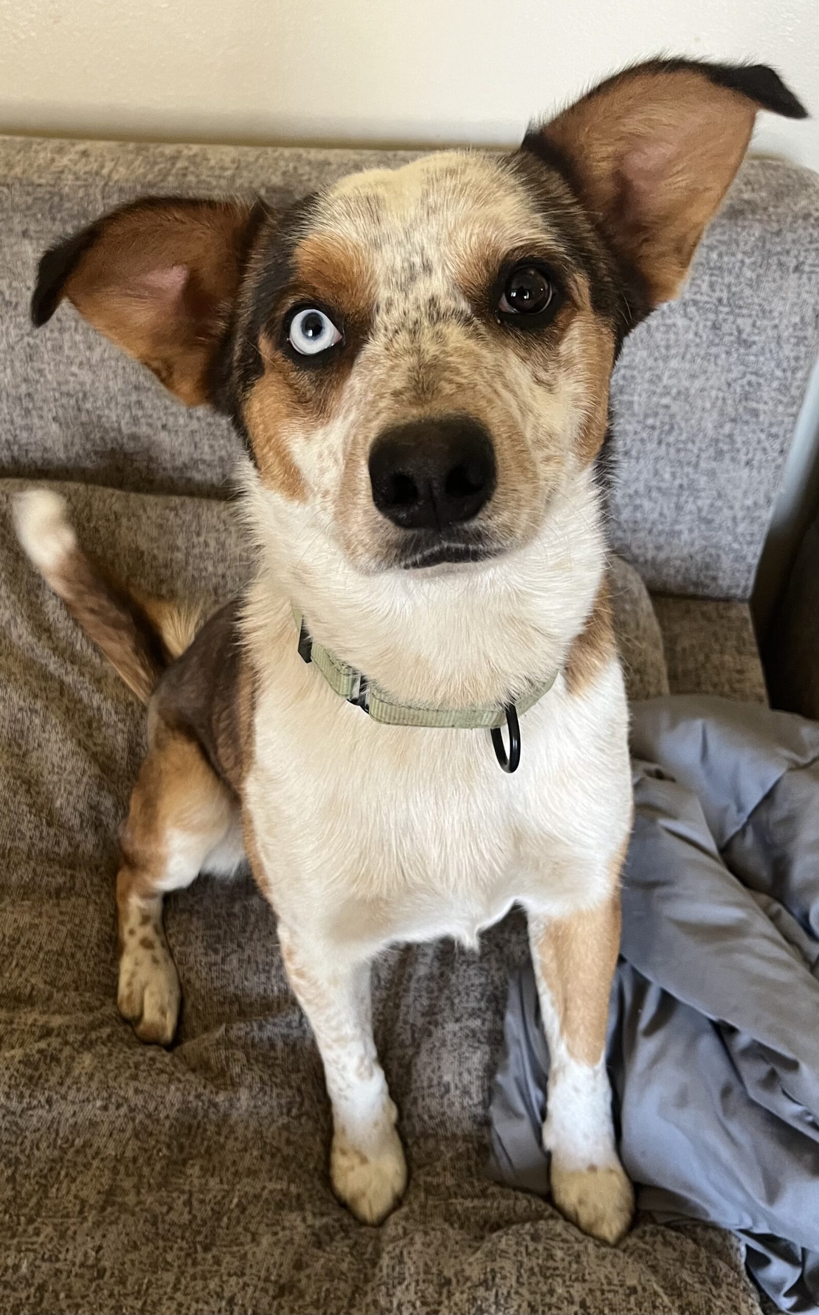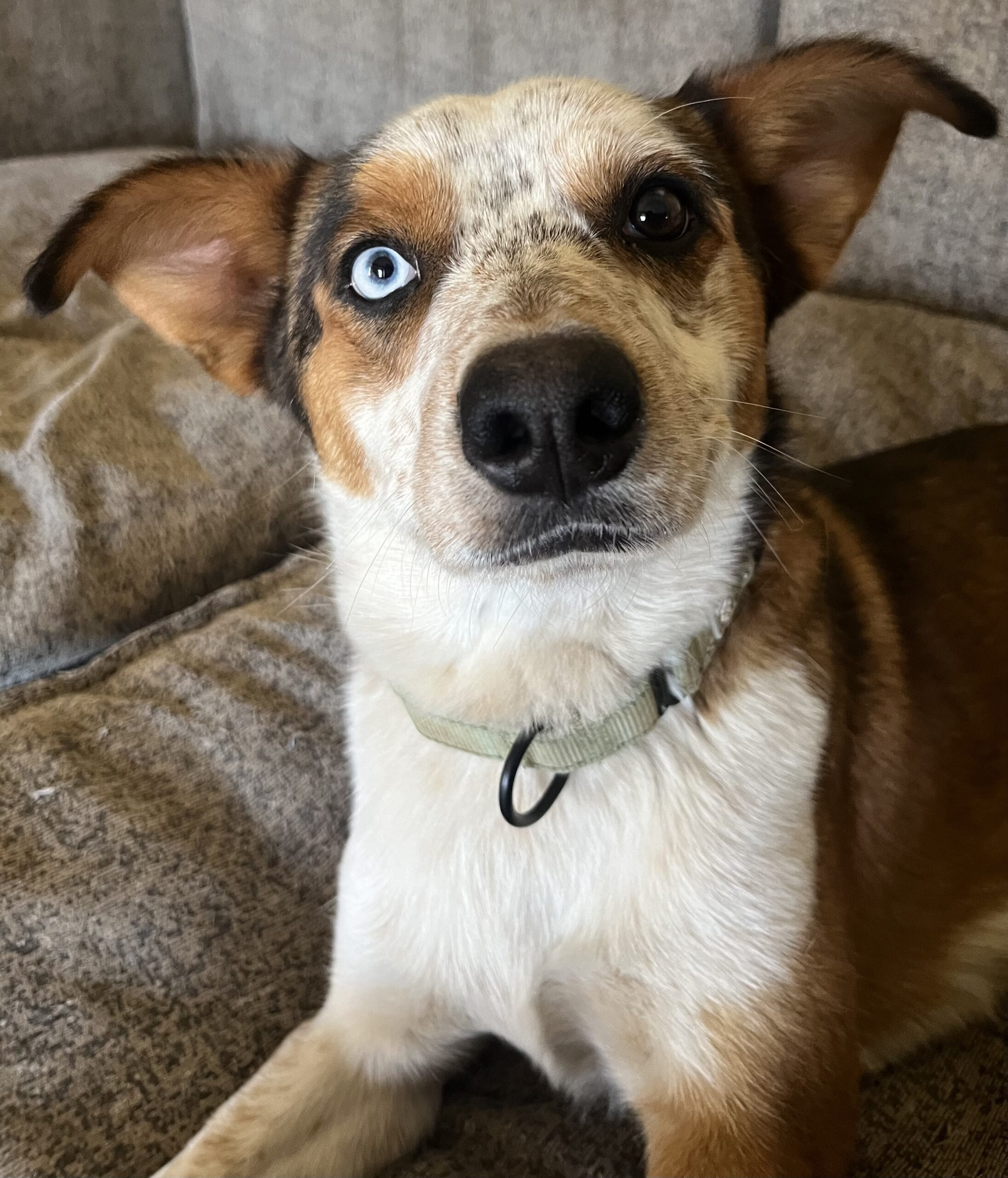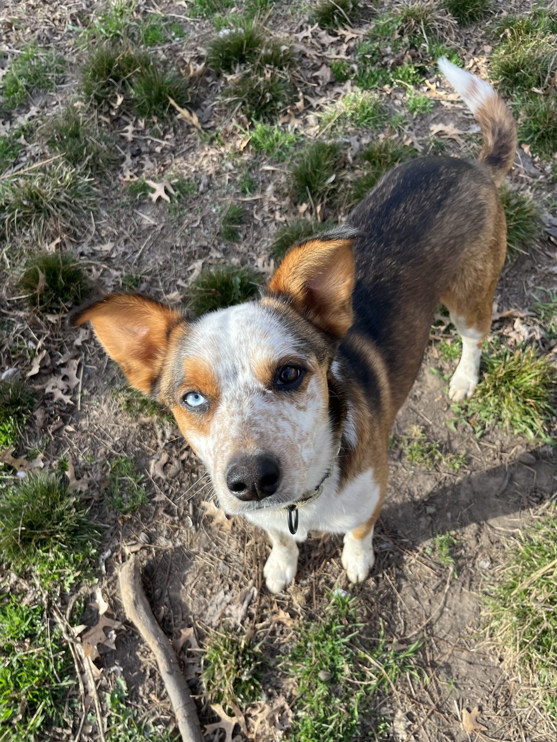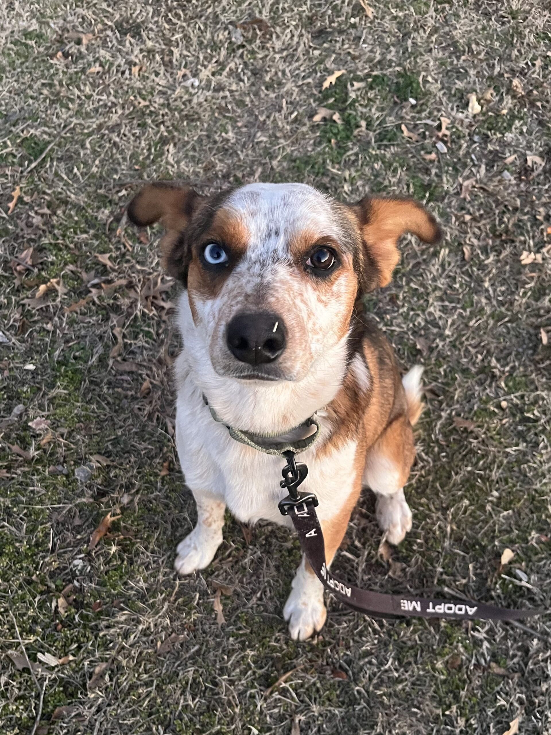 Toby is a 1 year old, 35 lb cattle dog mix. This handsome boy is eager to please and will proudly show off his sit, shake, and lay down whenever you ask. Toby is housebroken, crate trained, and has excellent manners in his foster home. He is dog friendly and absolutely LOVES people. He doesn’t pay attention to cats. He loves the outdoors and is happiest when he has space to explore, sniff, and stretch his legs. Whether it’s walks, yard time, or tagging along on an adventure, Toby is ready to go. After a day of fun, he is more than happy to cuddle up next to you on the couch and soak up attention. He would love a person or family who wants a loyal buddy to share life with. Toby is truly a wonderful boy and ready to be someone’s very best friend.
