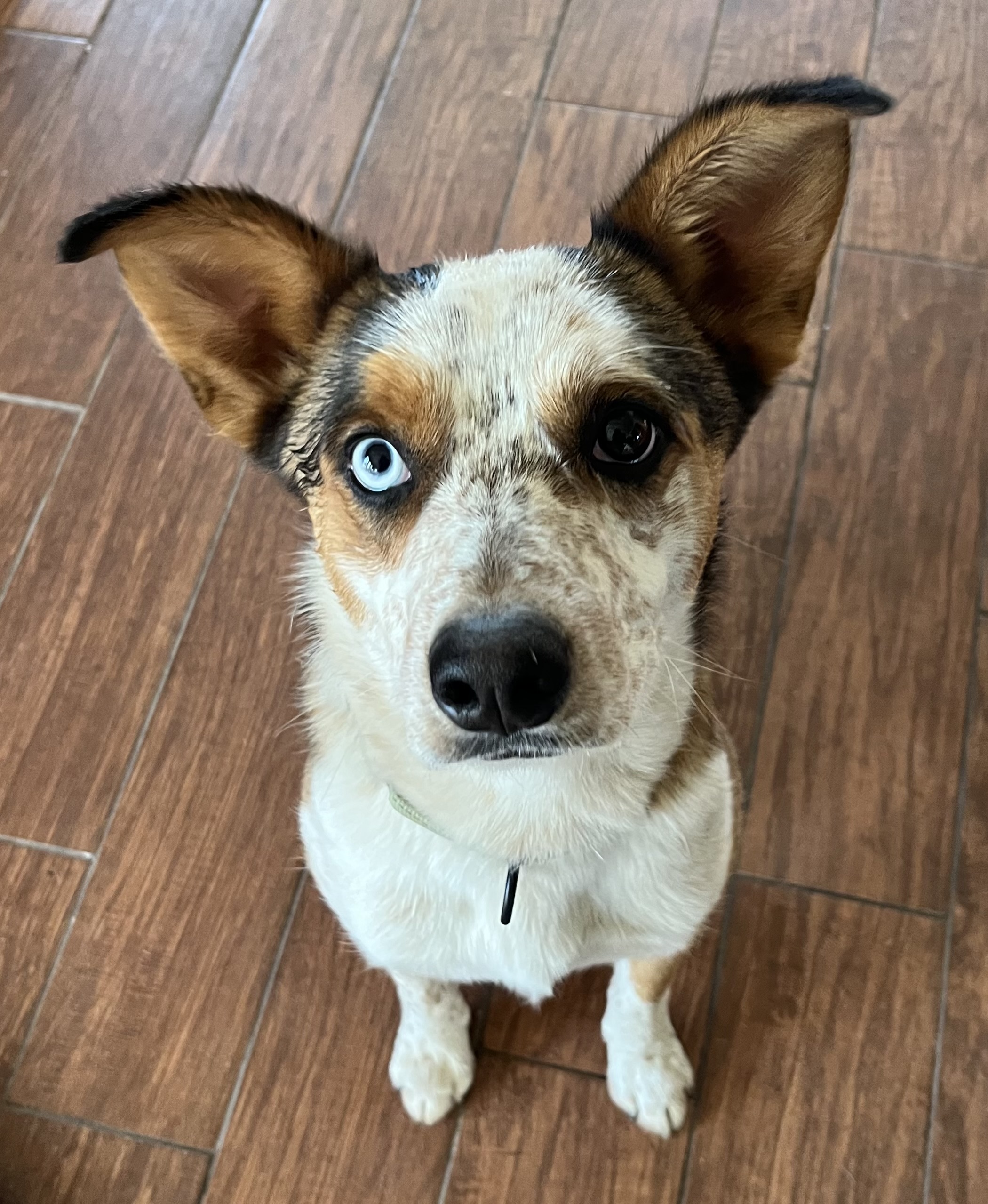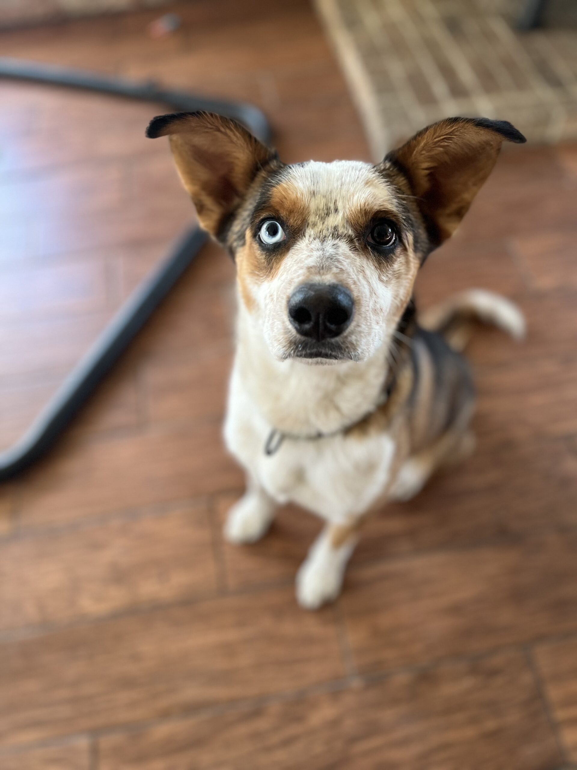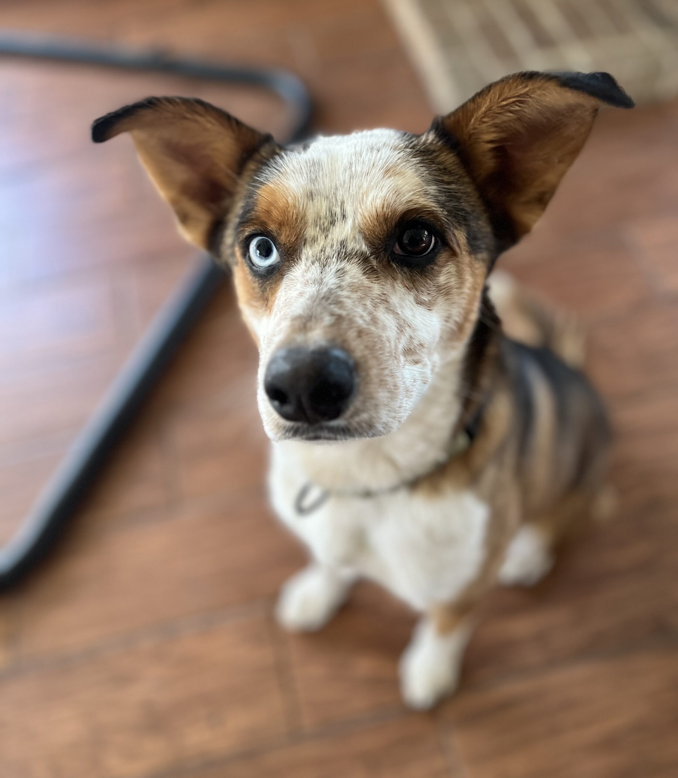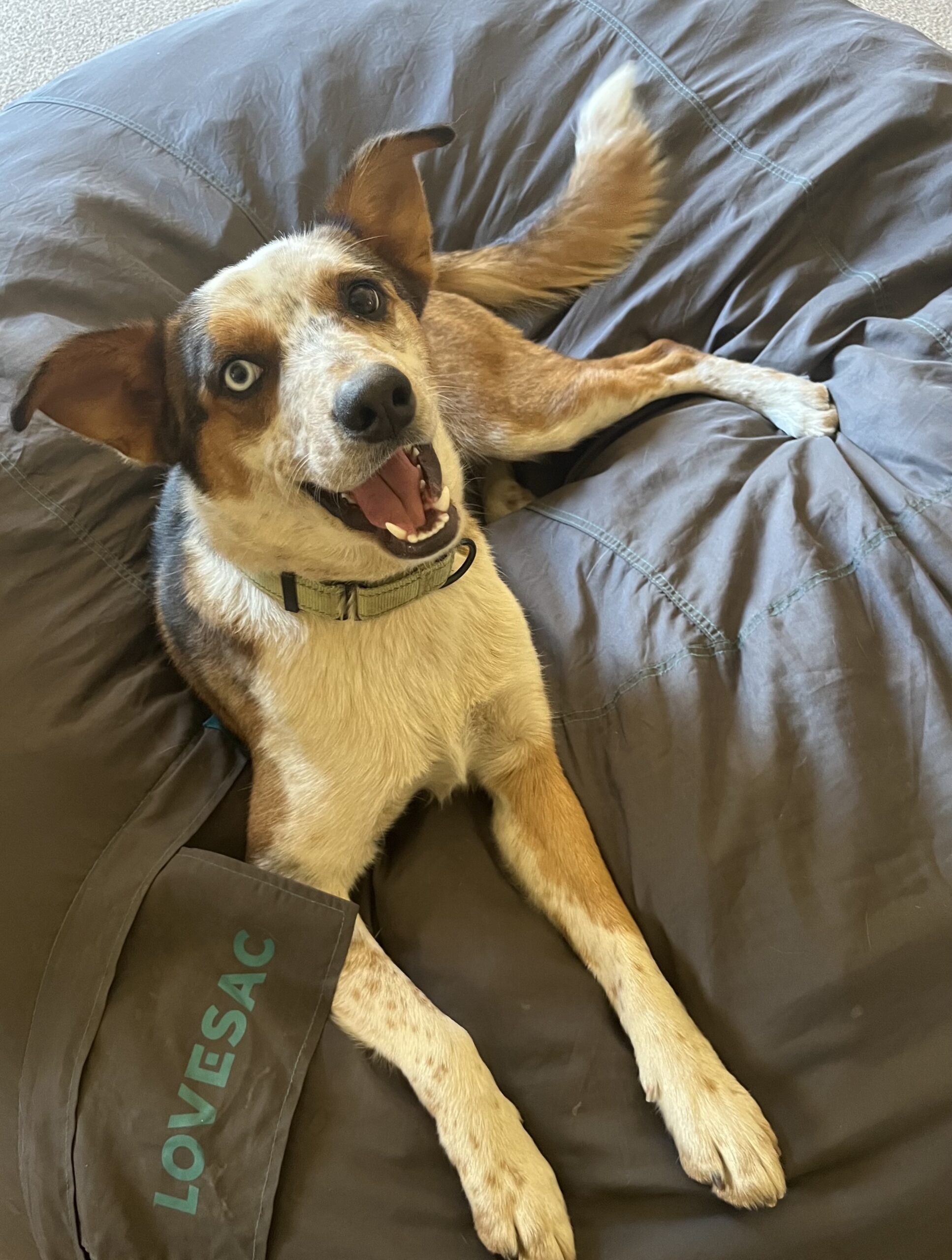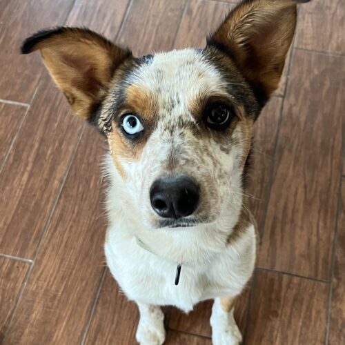 Toby is a 1 year old, 35 lb cattle dog mix. This handsome boy is eager to please and will proudly show off his sit, shake, and lay down whenever you ask. Toby is housebroken, crate trained, and has excellent manners in his foster home. He is dog friendly and absolutely LOVES people. He doesn’t pay attention to cats. He loves the outdoors and is happiest when he has space to explore, sniff, and stretch his legs. Whether it’s walks, yard time, or tagging along on an adventure, Toby is ready to go. After a day of fun, he is more than happy to cuddle up next to you on the couch and soak up attention. He would love a person or family who wants a loyal buddy to share life with. Toby is truly a wonderful boy and ready to be someone’s very best friend.