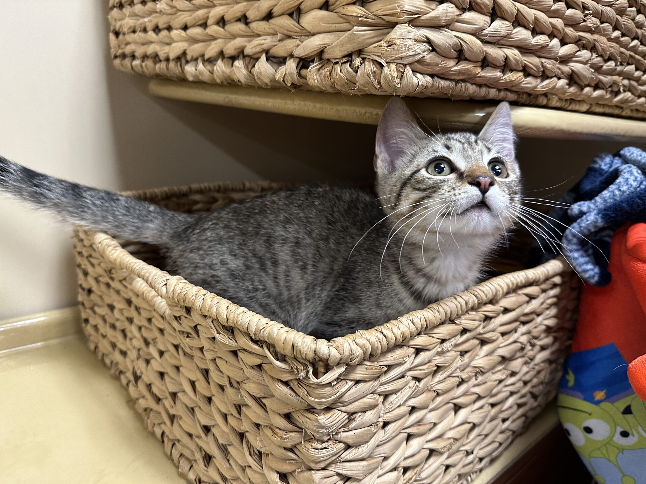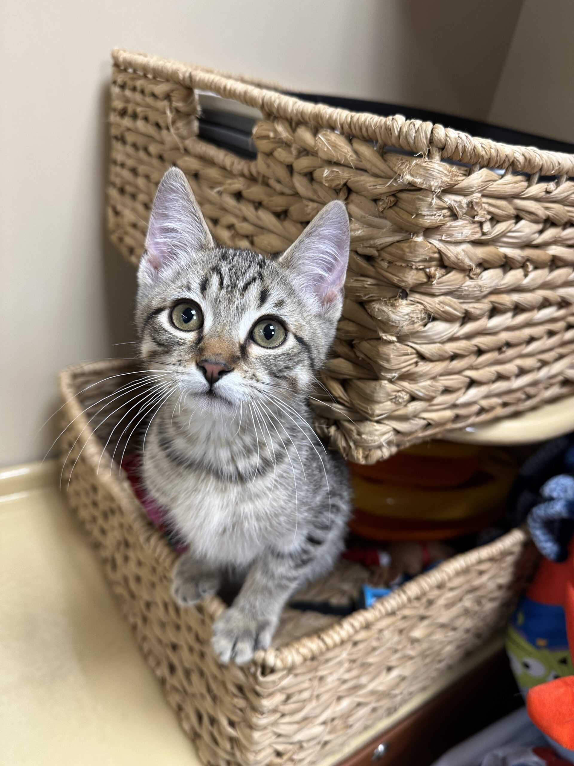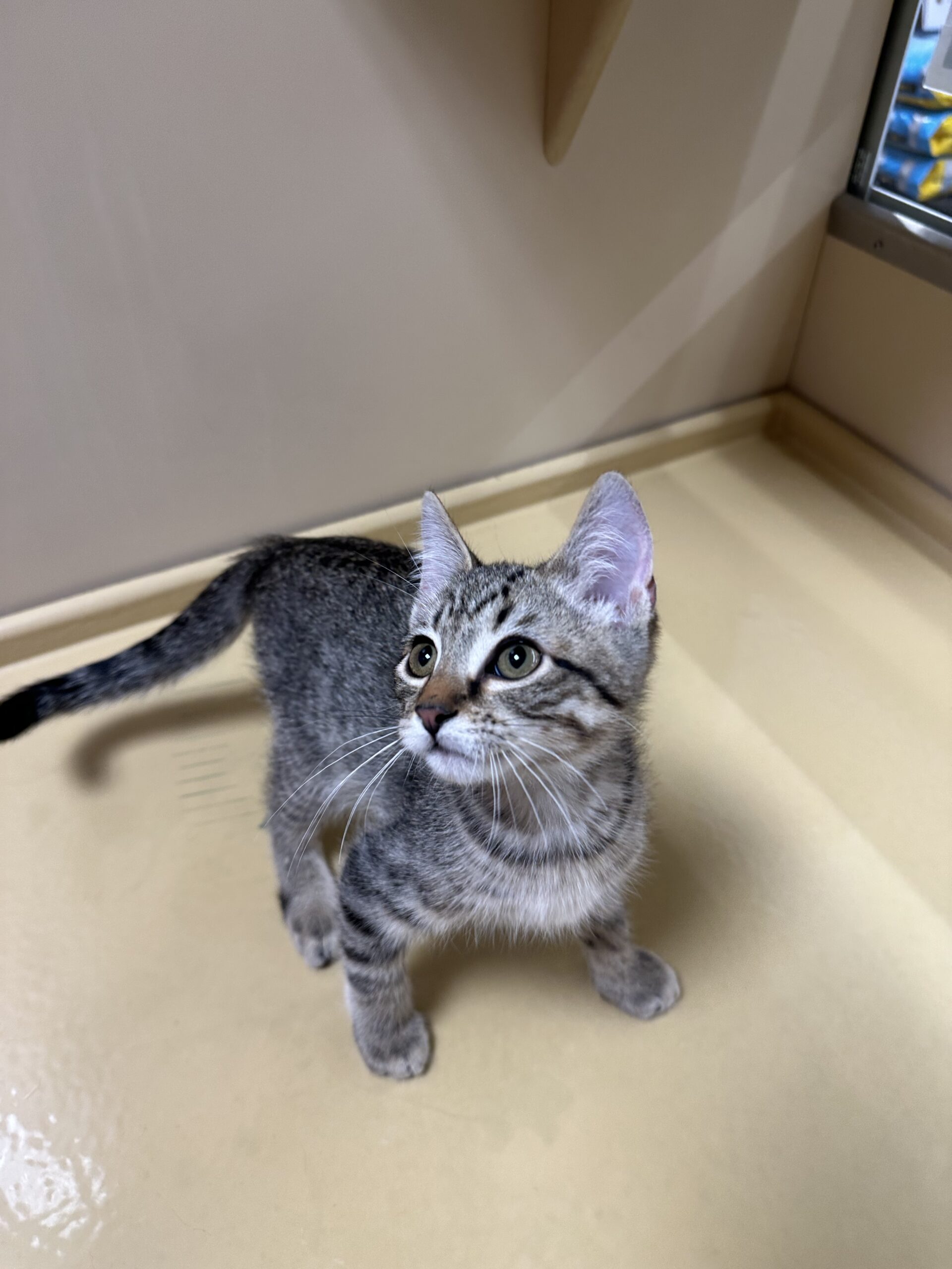My name is Edward! ! I was living with a nice family that took my mom in when she was pregnant and wandering the streets. They helped keep my mom healthy and bring me into the world. They knew that me and my siblings needed the best homes so they reached out to the rescue who got us fixed and fully vetted and are now helping us look for our forever homes. I am playful. I love to perch on your shoulder and follow you around where ever you go. My foster mom says I’m a tiny little shadow! I am a playful boy. I love toys and playing with kitty friends. I’m looking for a home to give me all the love and affection I can get!