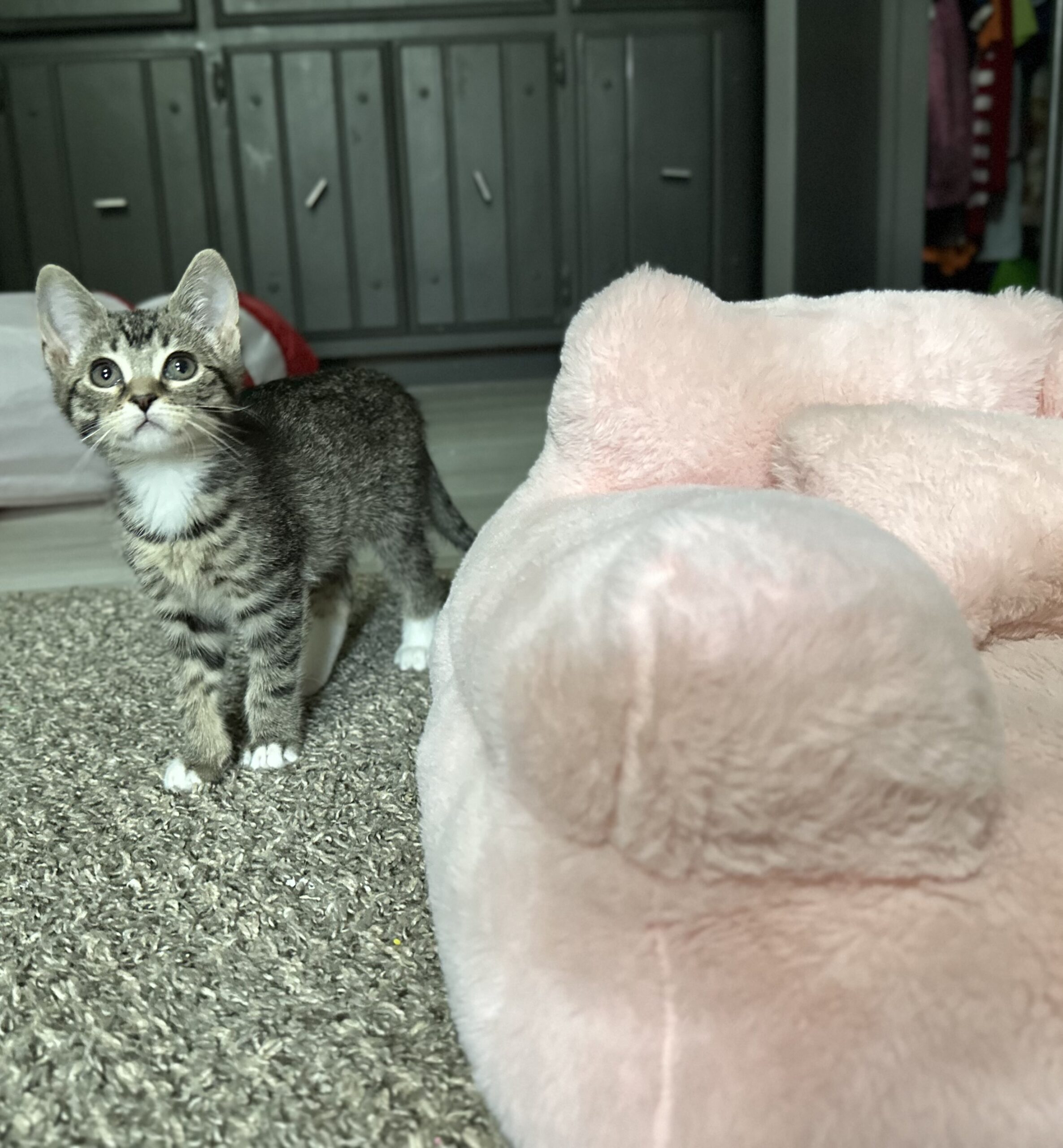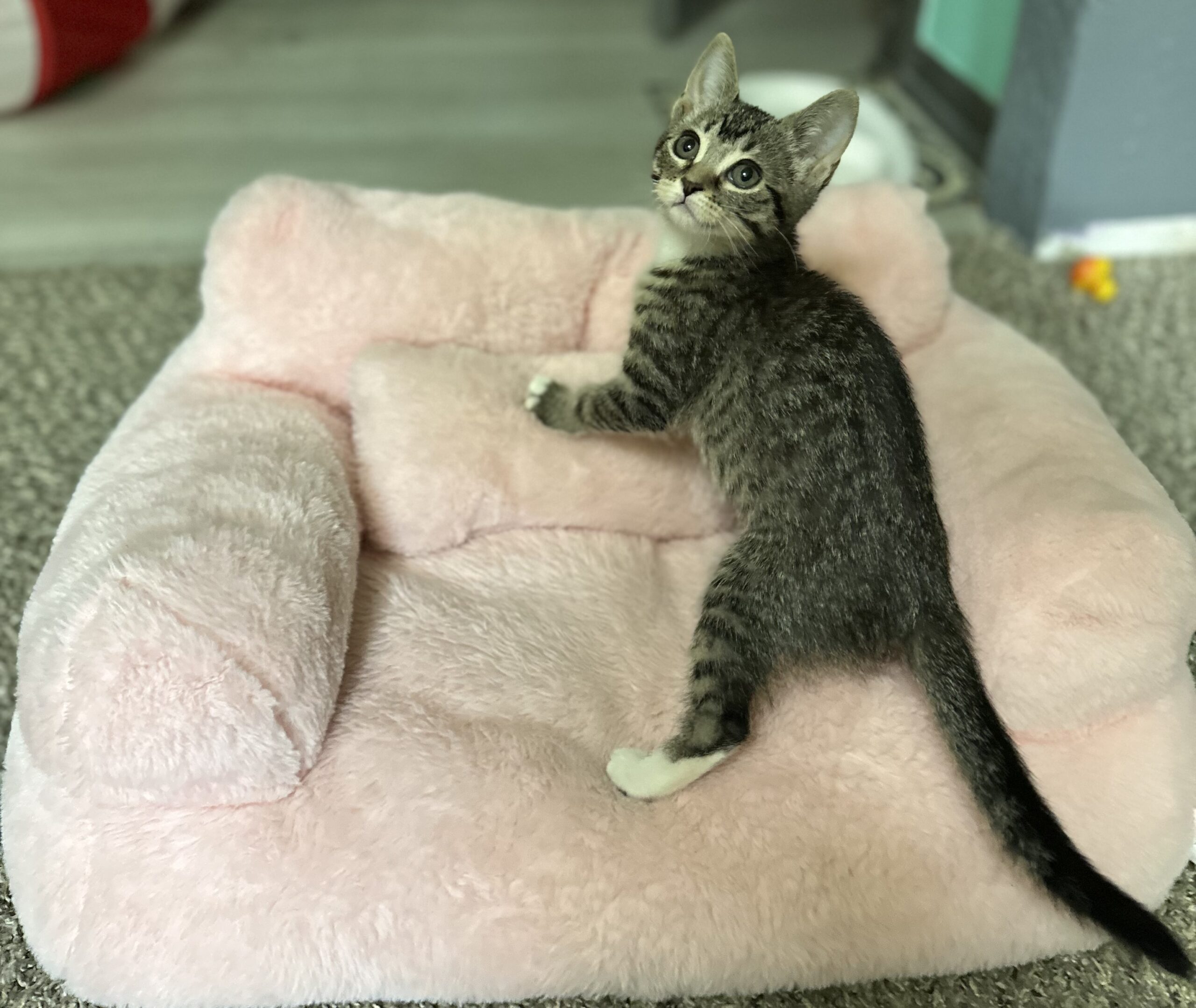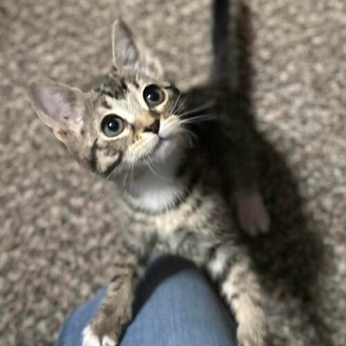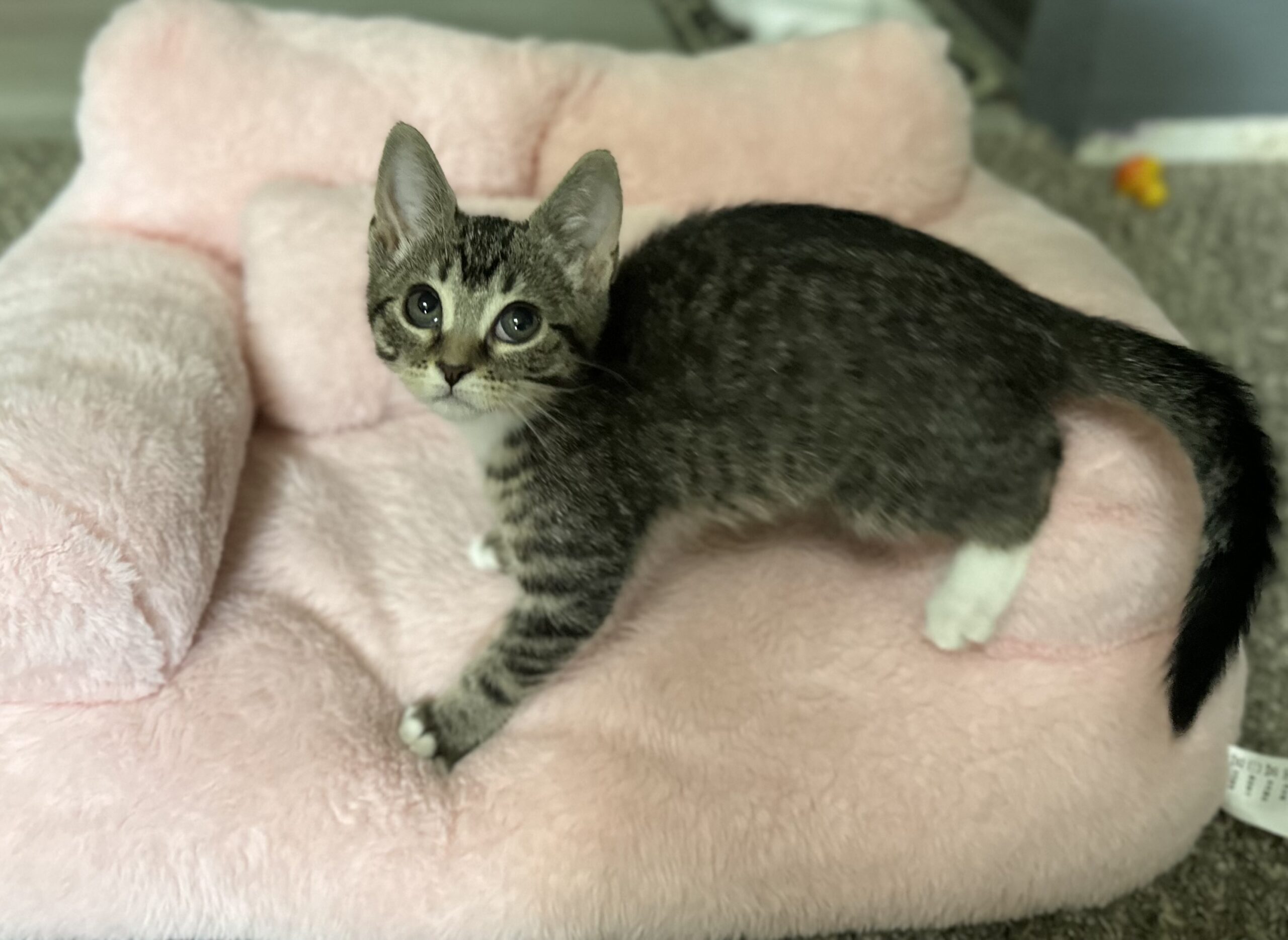 Jess loves to explore! She enjoys tunnels, toys and her kitty friends to play with.