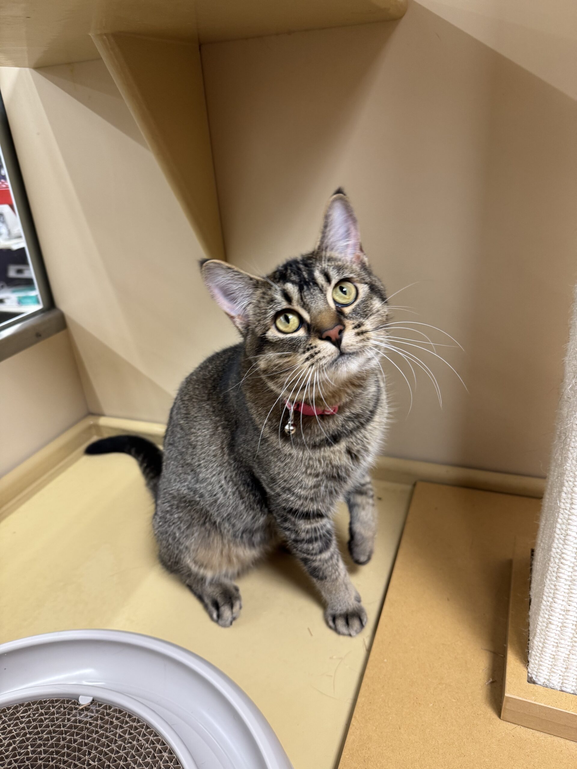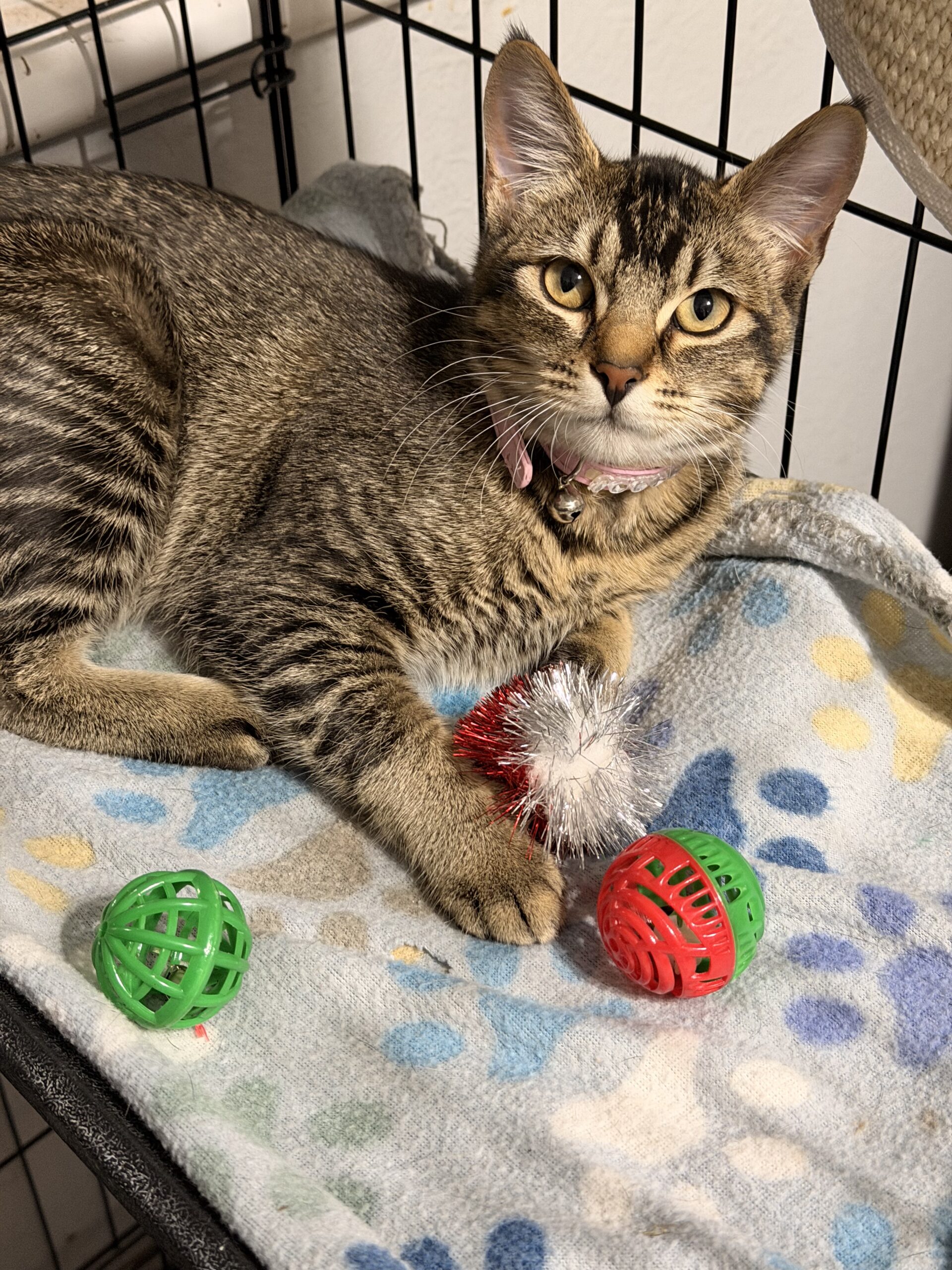 She's spunky, confident, adventurous, and still melts into love and affection! She’s the kind of kitten who wants to be involved in everything, explore everywhere, and then curl up close like she didn’t just conquer the entire house.