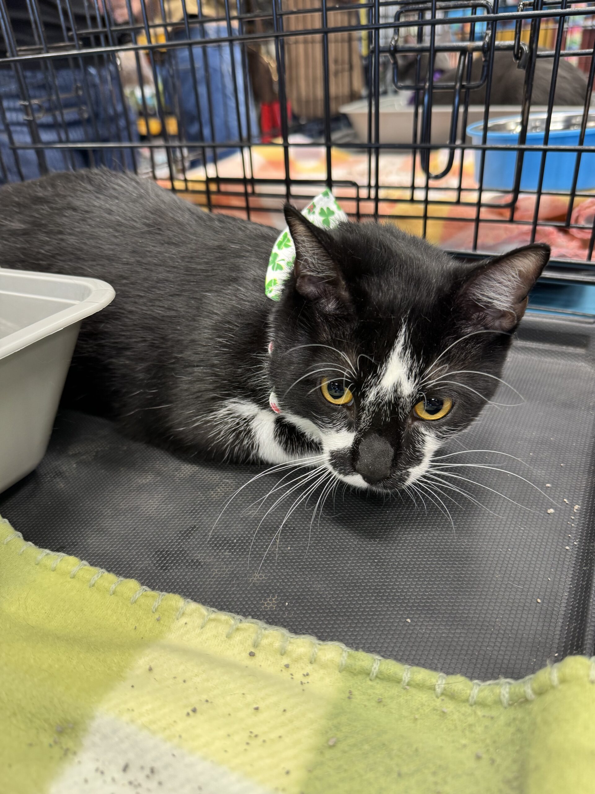 Miller showed up one day seeking shelter from the cold. No one claimed this sweet boy so he was brought into the rescue to find his furever home. He is estimated to be around 6 months old. He is sweet a pie. Loves snuggling and getting all the love from his human friends.  He warms up to other kitty friends pretty quickly and loves to play. Miller would do great in a home with other cats but would also be fine as an only cat as long as someone is there to give him love and affection.