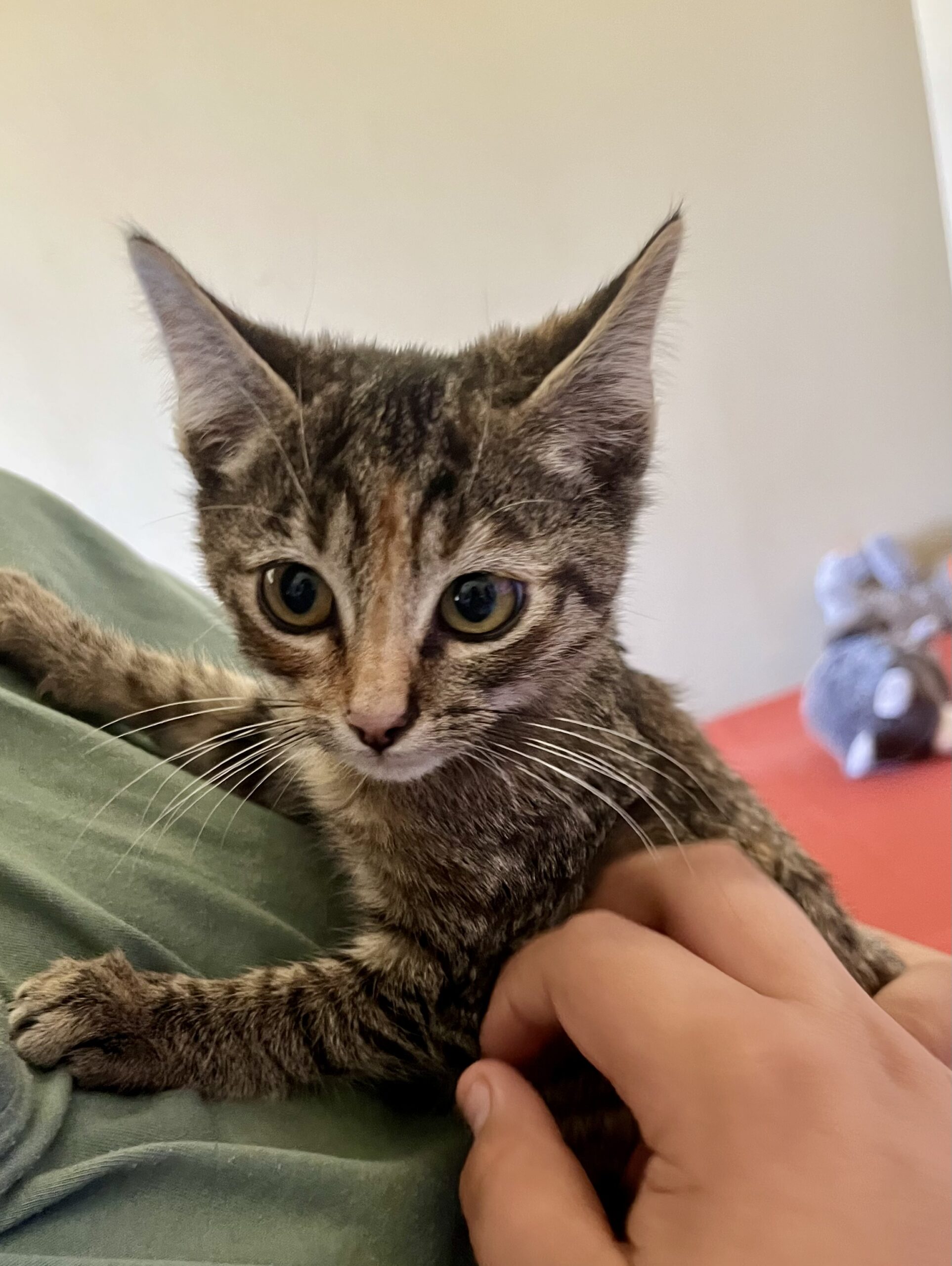Plum is the tiniest of her litter. She has a unique color and large expressive eyes. She is a very sweet girl. She is spayed, microchipped, up to date on vaccinations, dewormed and her litter tested negative for FeLV and FIV.