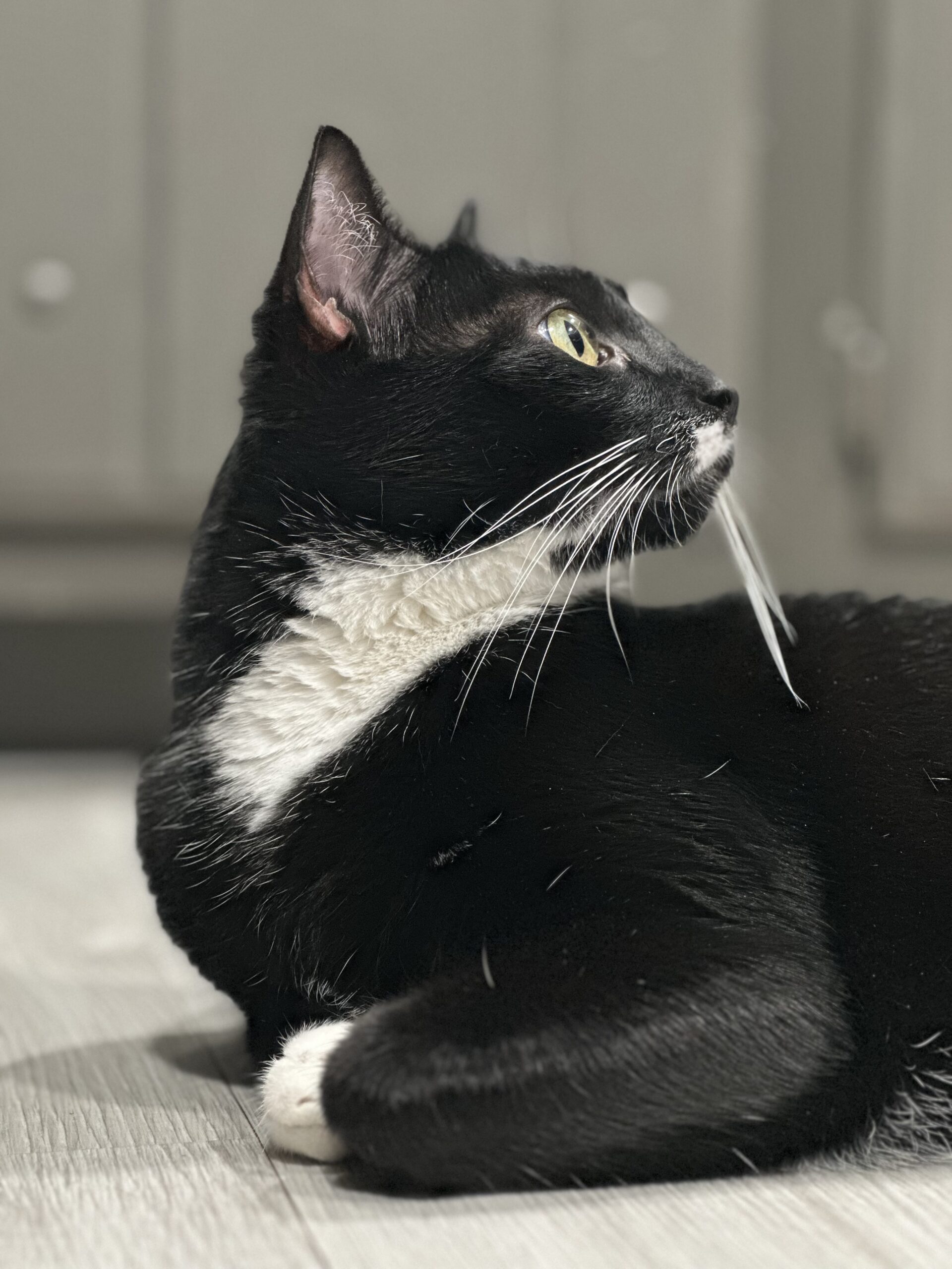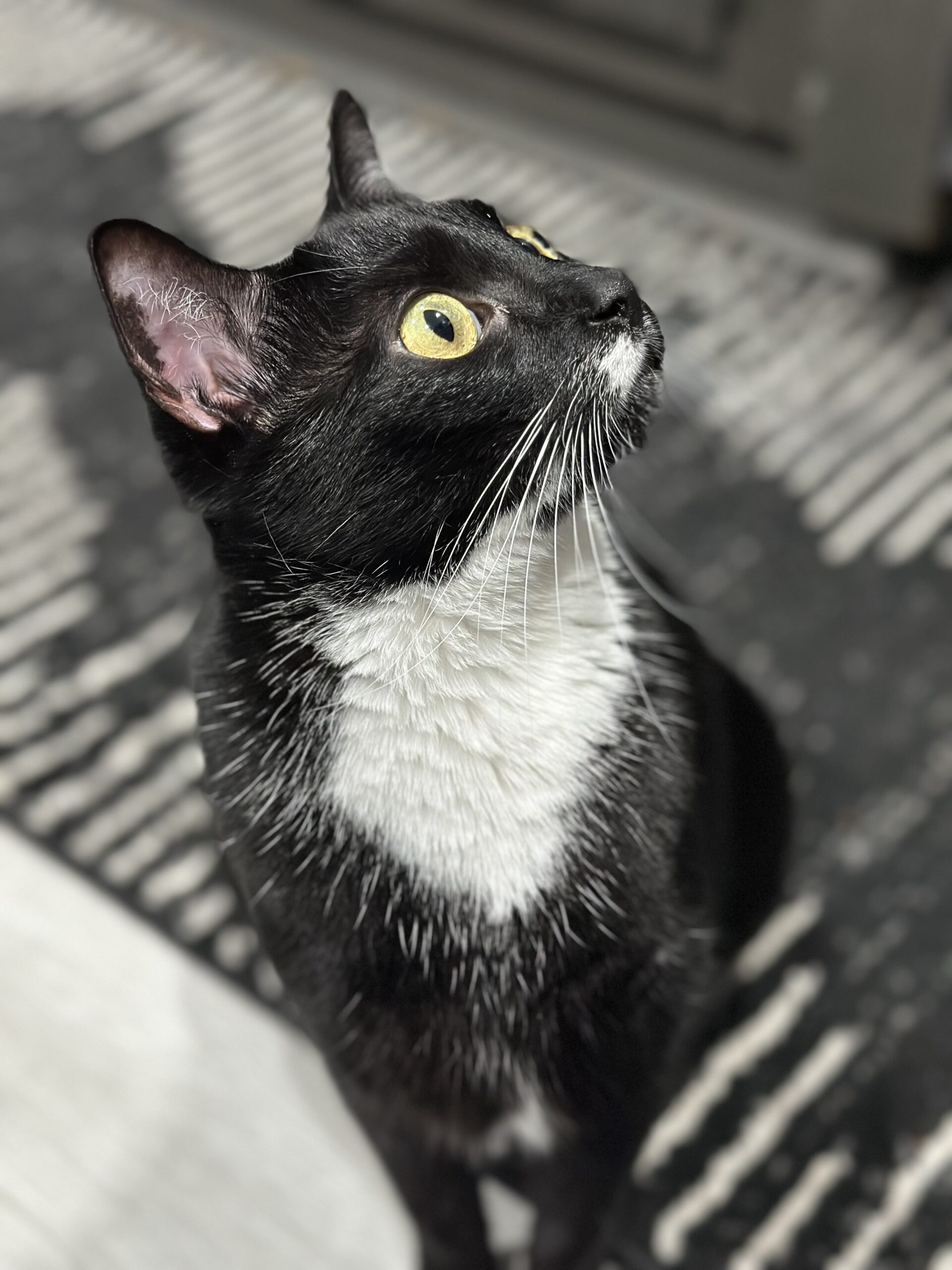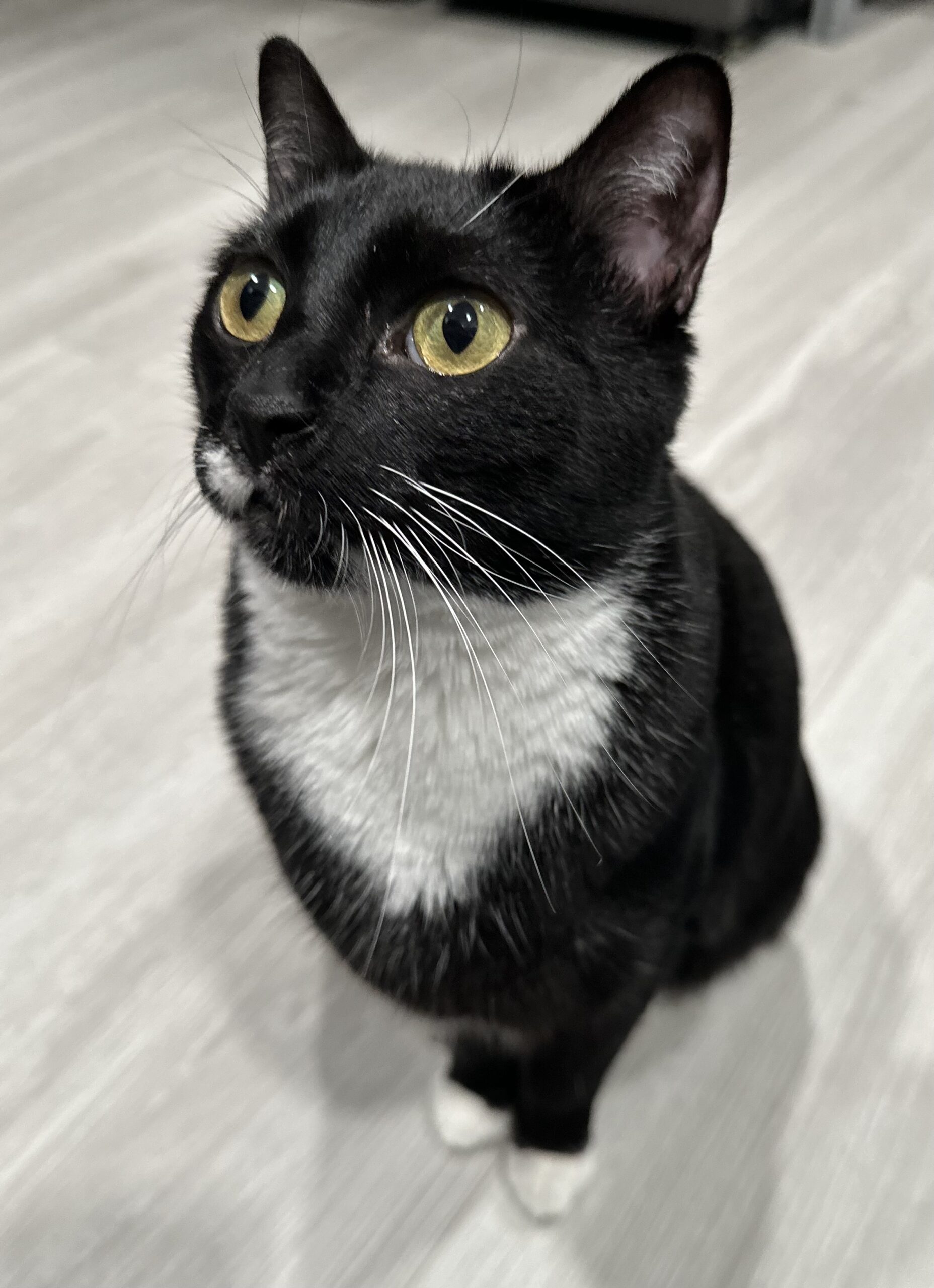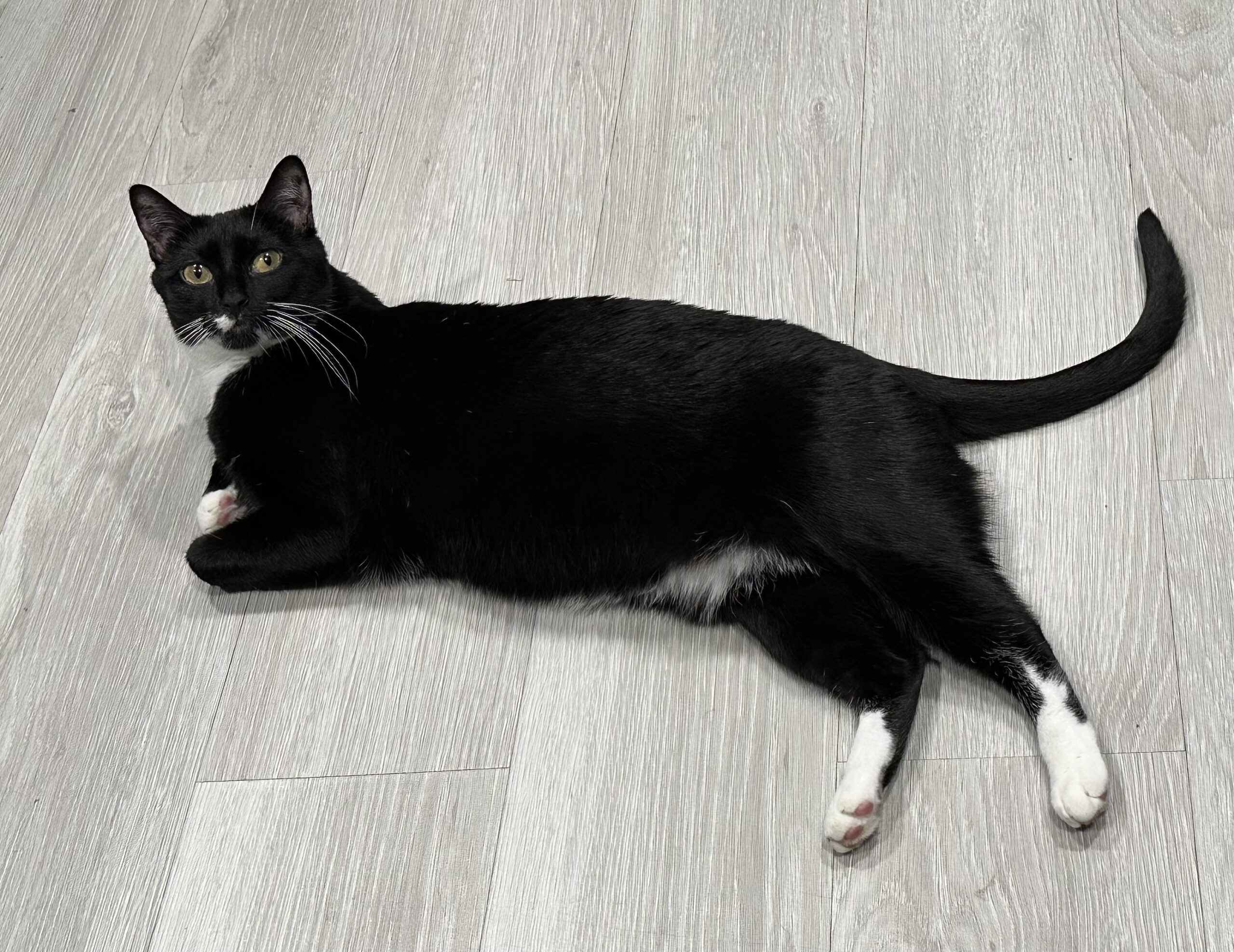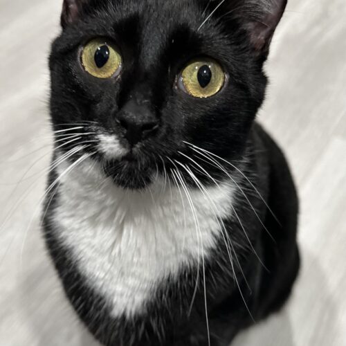 Sapphire was found in the center of freeway traffic coming from every which way. She is getting used to living inside. She has a love for food and head scratches! She’s feeling a bit nervous getting settled but slowly figuring how to live indoors. She lives with dogs and cats but they still make her nervous at times. Sapphire would benefit from a home that is calm and be the only cat or have dog or cat roommates that will let her do her own thing. She is still nervous and is working on being more confident.