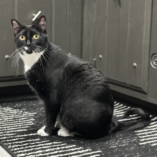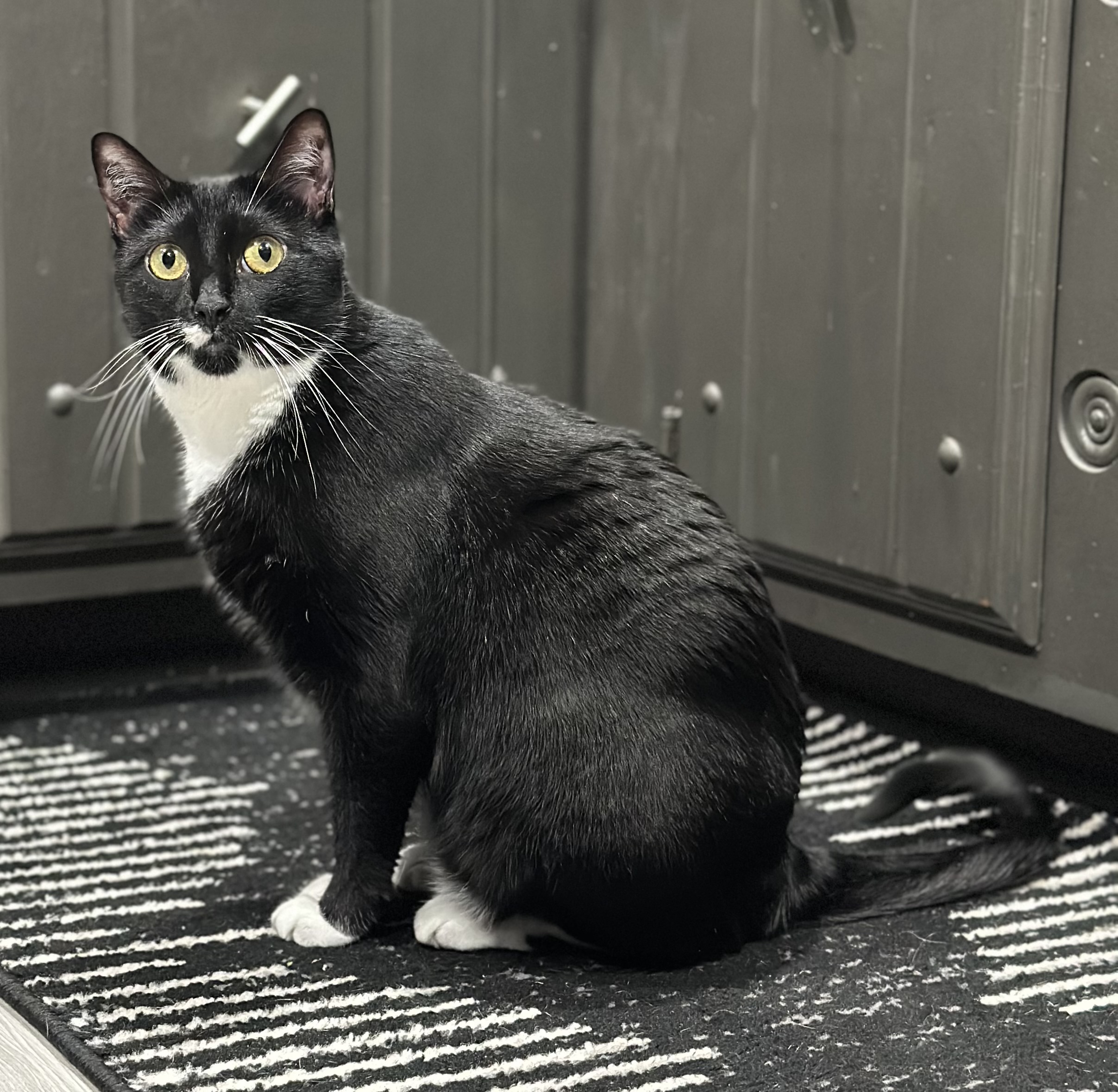 She has a love for food and head and chin scratches! She lives with dogs and cats but does her own thing usually.