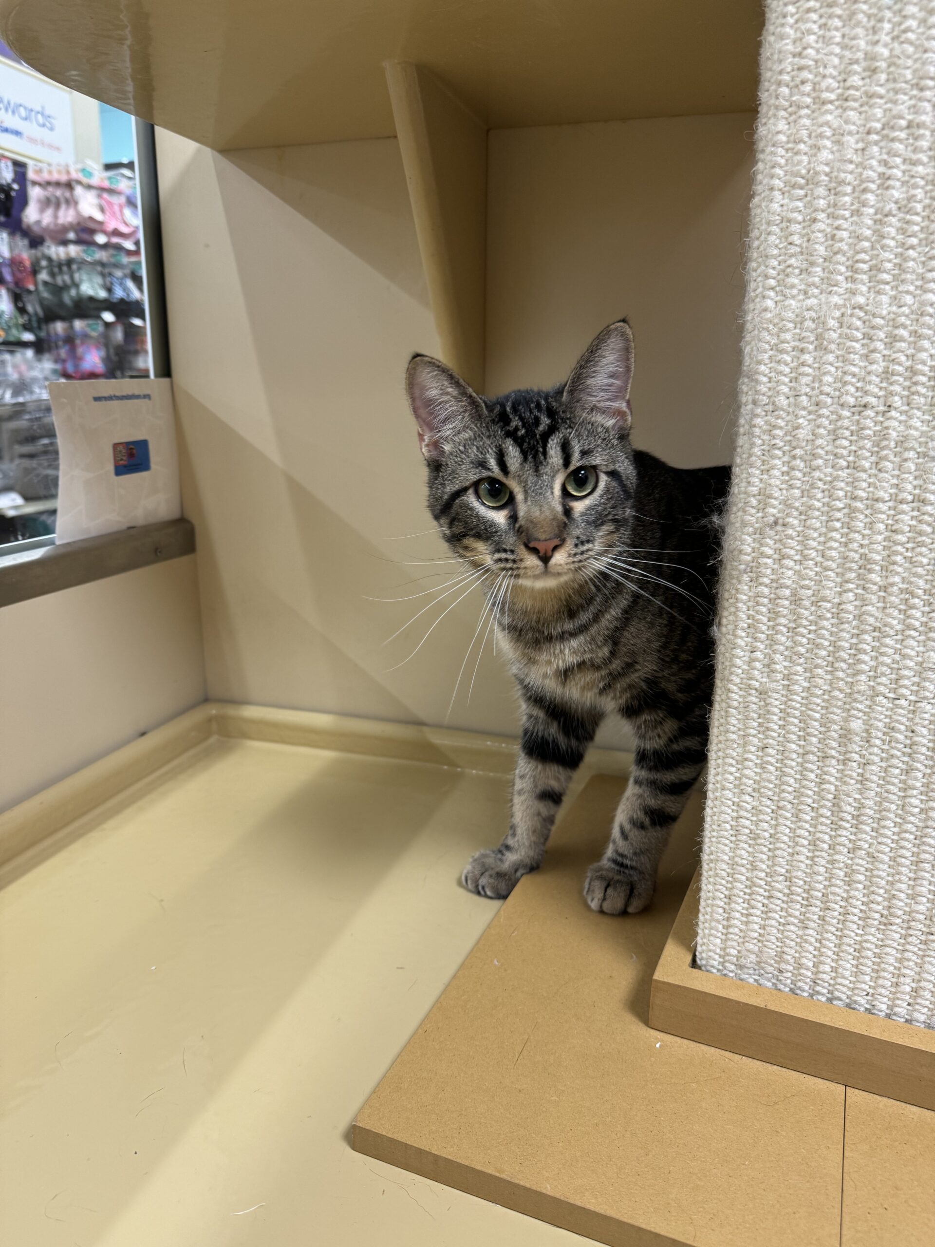 Sirius is one of the adorable kittens (with a fun swirl pattern coat) from a sweet litter ready to find their furever homes! He might be a little shy at first, but give him some gentle head scratches and he’ll soak up every bit of your love. This little guy is a total hammock enthusiast, catch him snoozing in his favorite cozy spot whenever he gets the chance. If you’re looking for a lovable kitten, Sirius is your perfect match!