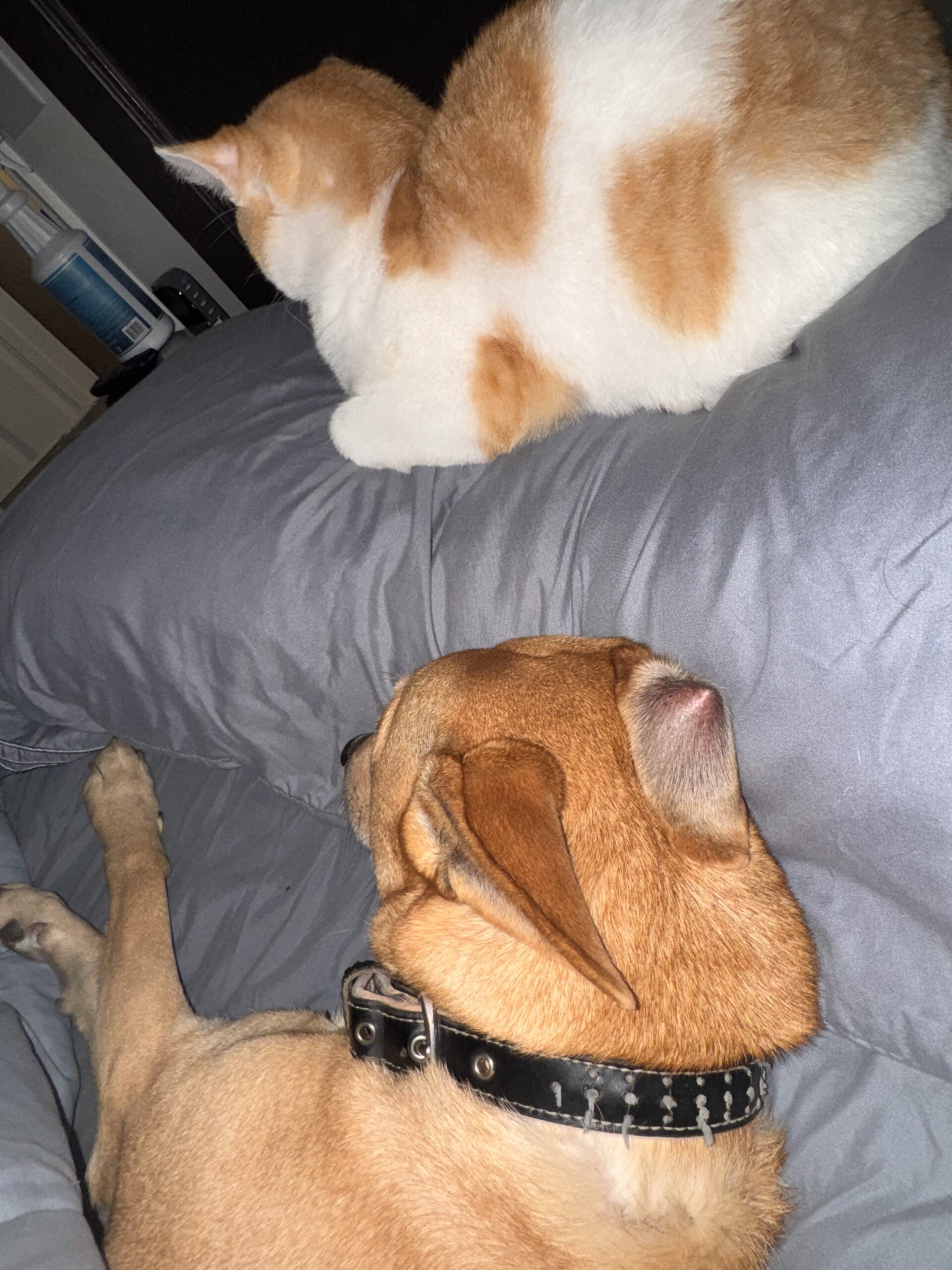 Tigger is a silly character who likes to run so fast his feet can’t keep up. He prefers the indoors, can be really chill, and is a big fan of belly rubs once he settles in. He currently lives with big dogs and honestly… he’s still deciding how he feels about that. Not sure he likes them yet, but he’s working on it and trying his best to have an open mind!