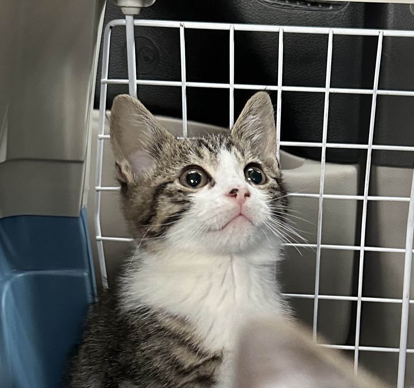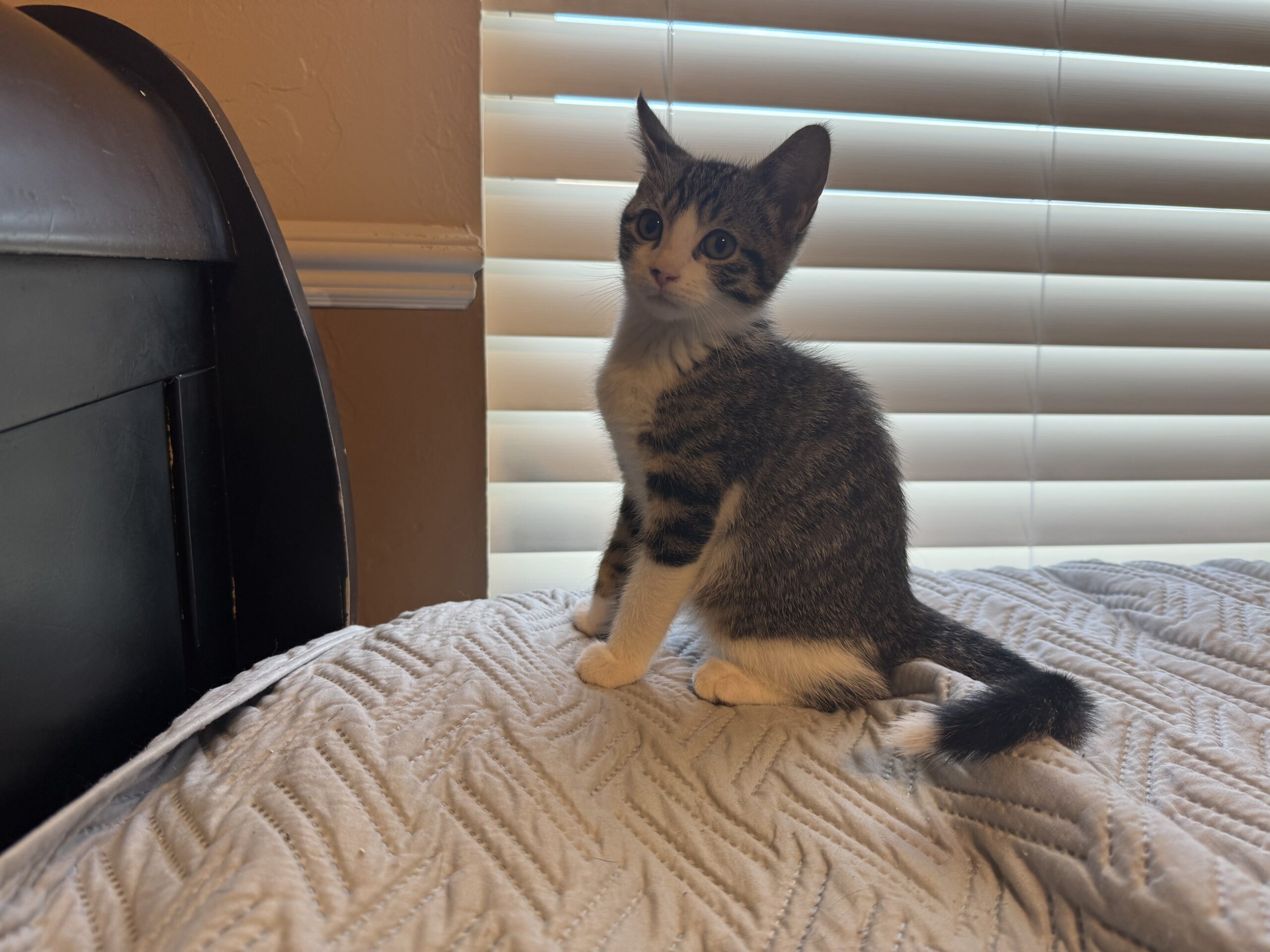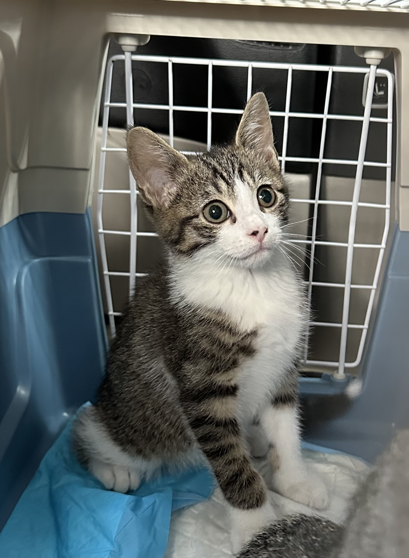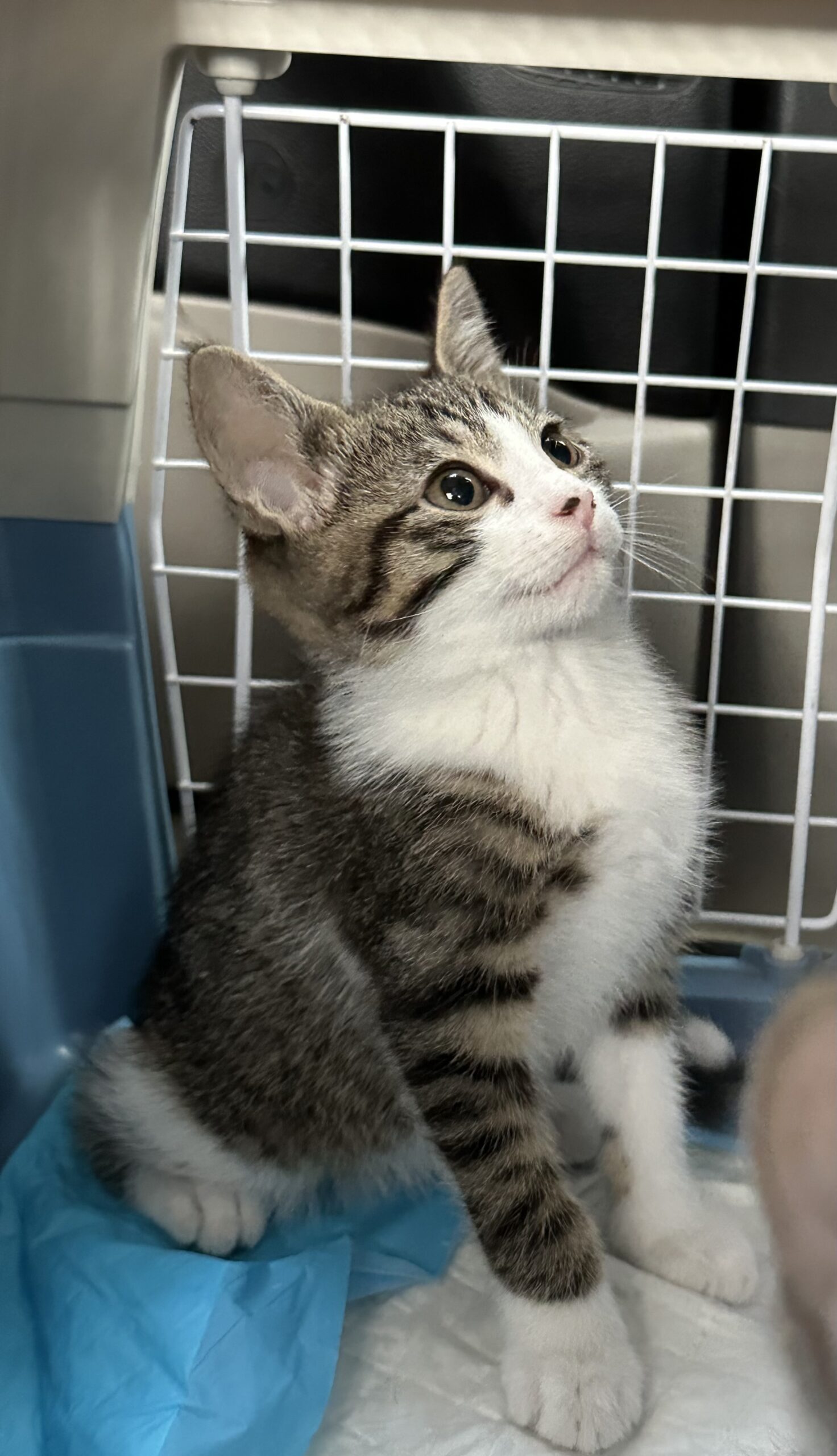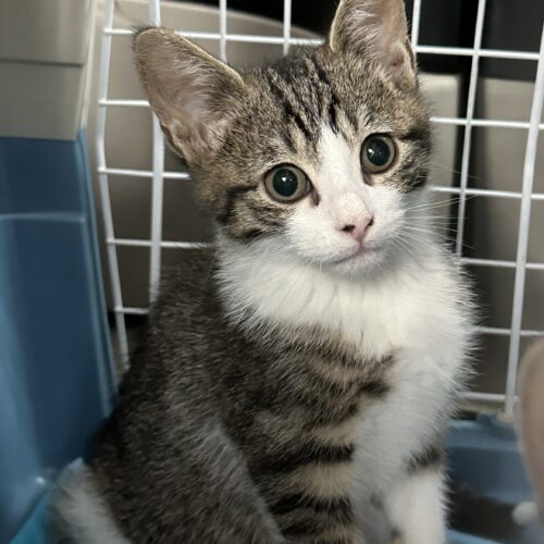 He’s still a kitten, so he’s full of curiosity and charm, and he’d love a home where he can play, grow, and be loved forever. If you’re looking for a loyal little companion who will greet you with purrs and head boops every day, this boy is your guy!
